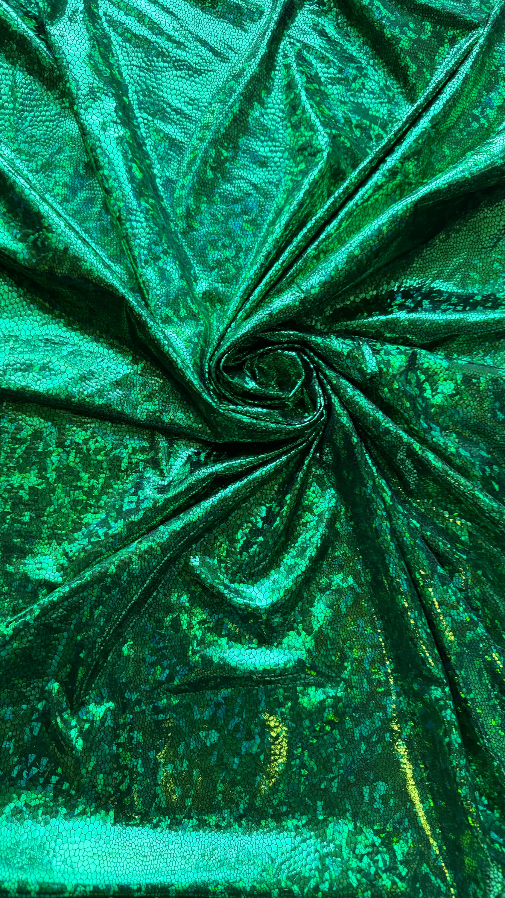 Reptile design hologram metallic poly spandex 2-way stretch 58/60” Sold by the YD. Ships worldwide from Los Angeles California USA. High quality fabrics by AlexLAFabrics