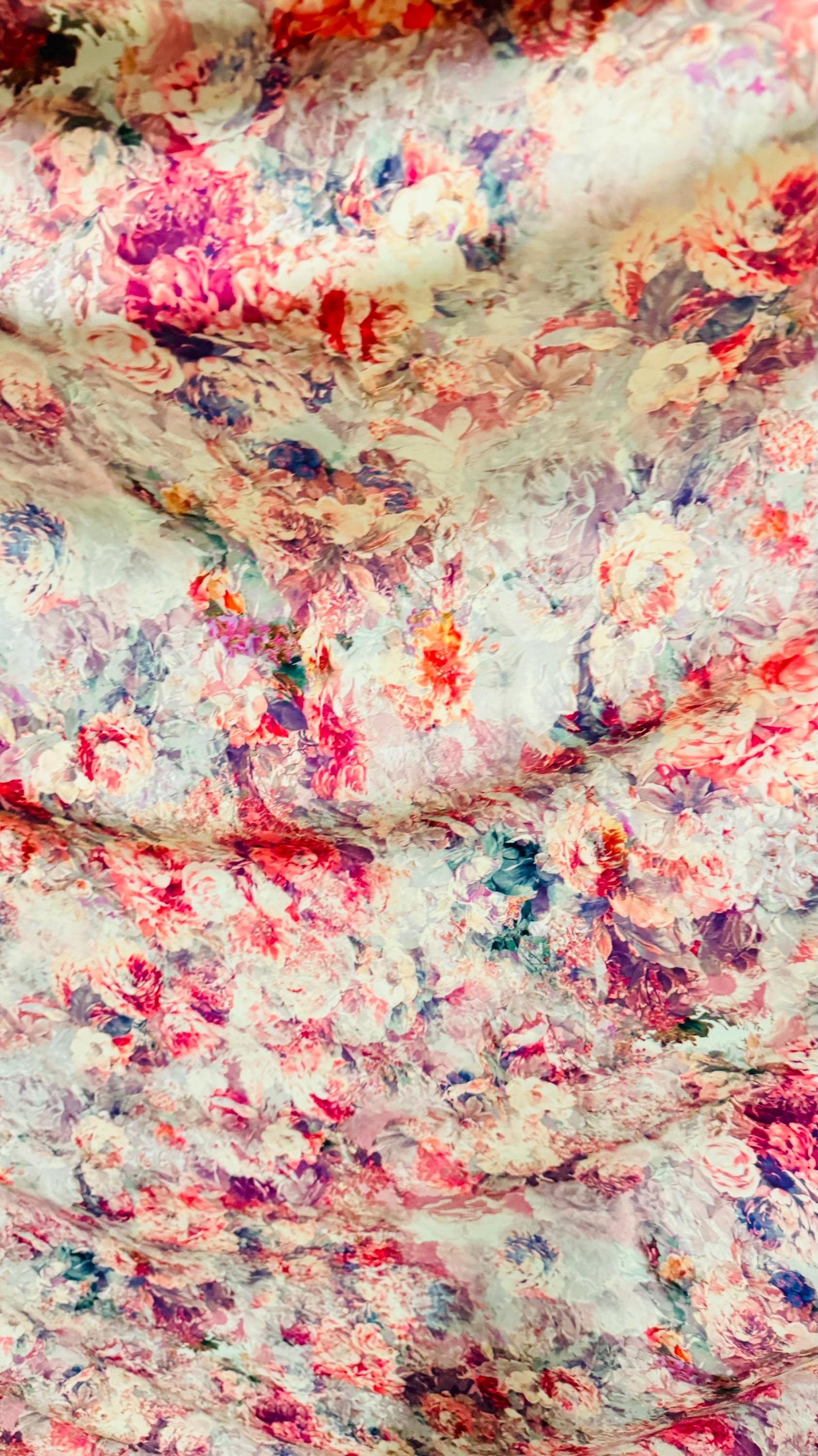 Romantic Flower design multicolor print on best quality of nylon spandex 4-way stretch 58/60” Ships Worldwide from Los Angeles California USA.