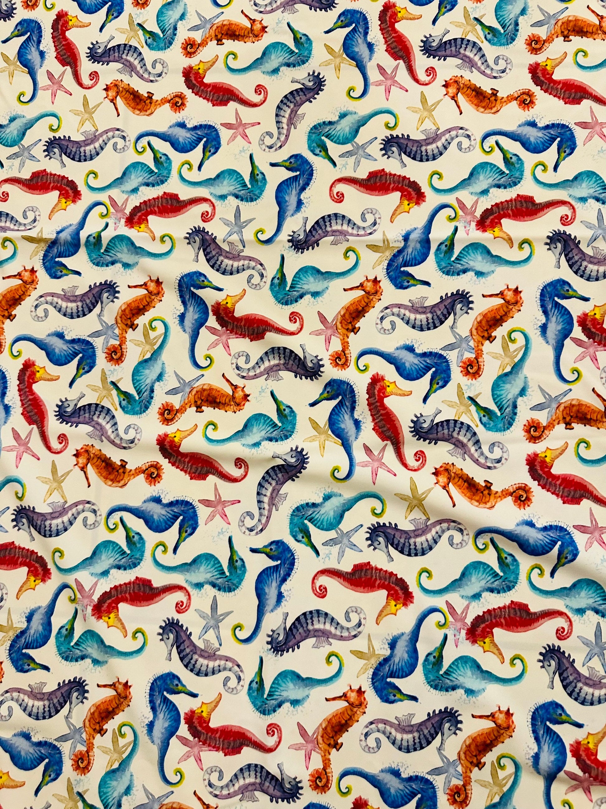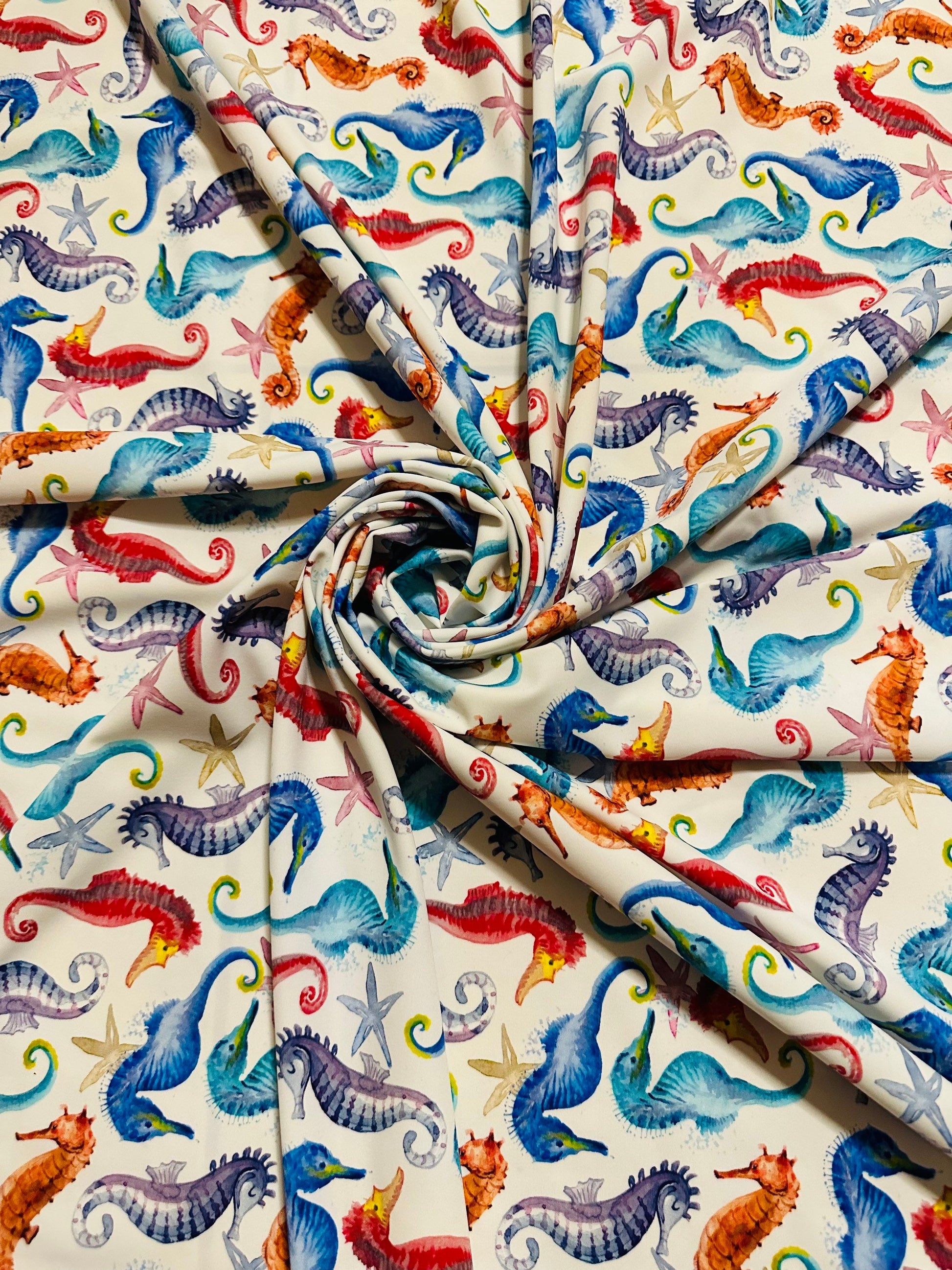 Seahorses colorful design print on best quality of nylon spandex 4-way stretch 58/60”