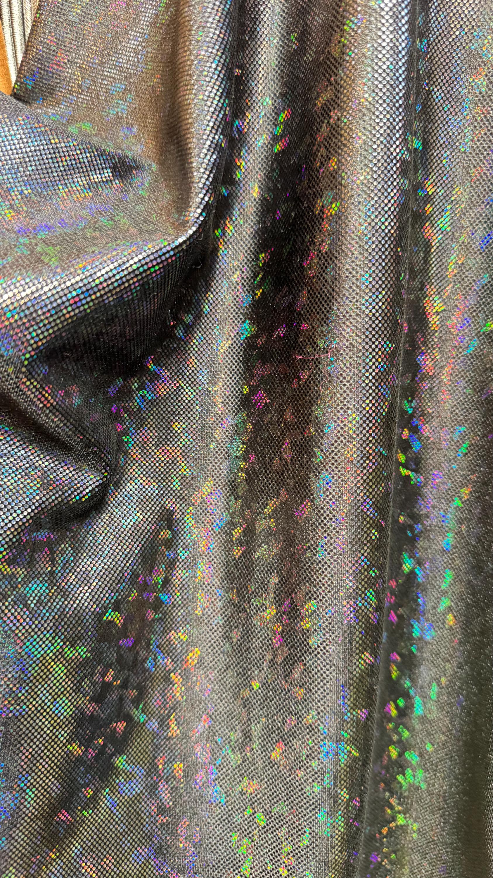 Shattered glass Black/Black hologram metallic foil on stretch velvet best quality in the market 4-way stretch 58/60” Sold by the YD. Ships worldwide from Los Angeles California USA.