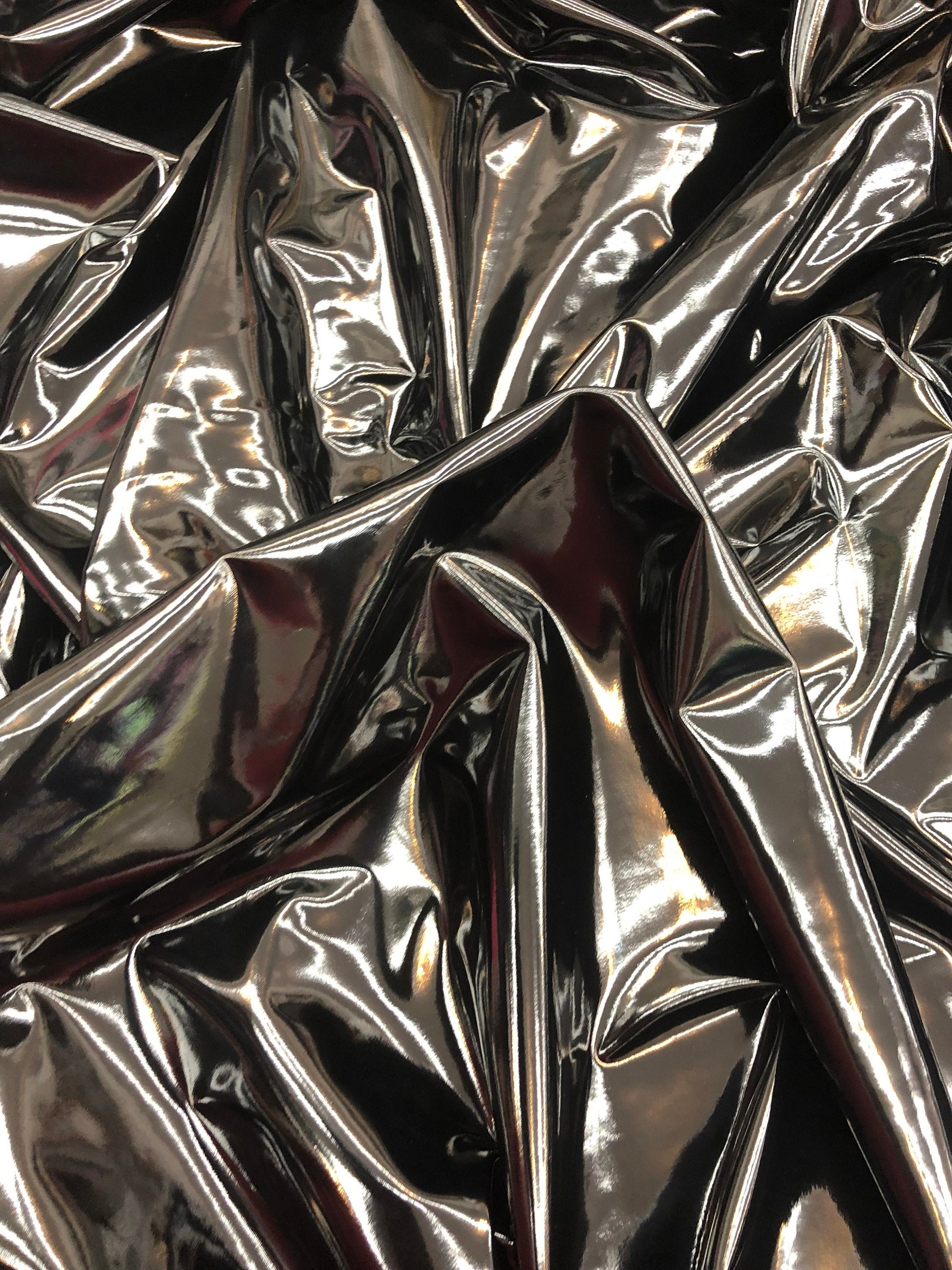 Shining black latex vinyl 4way stretch 58/60" Sold by the YD. Ships worldwide from Los Angeles California USA.