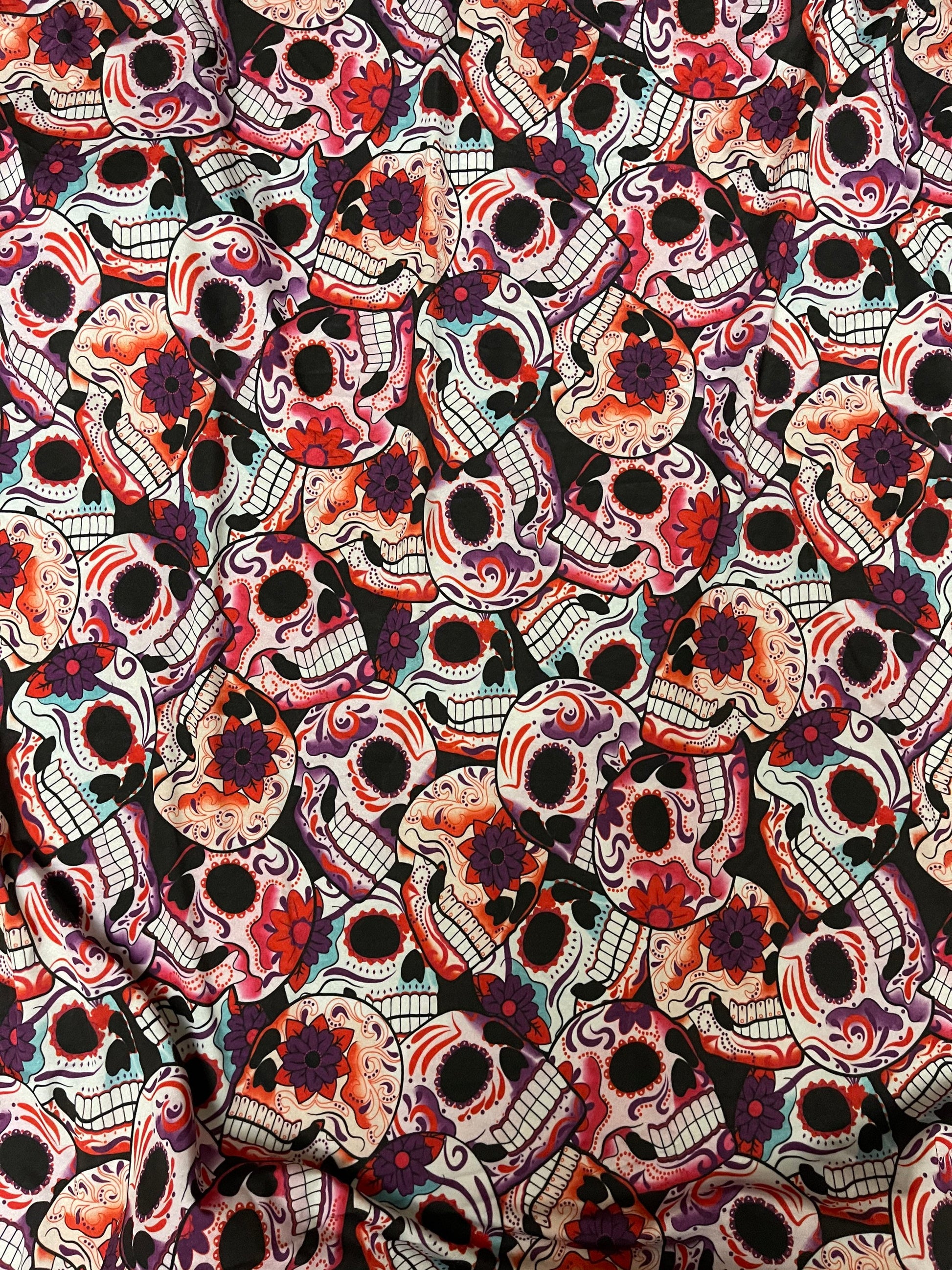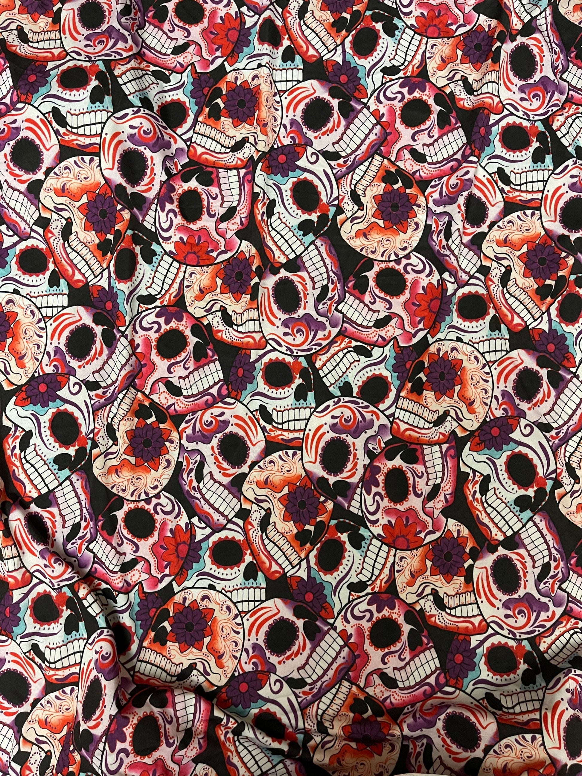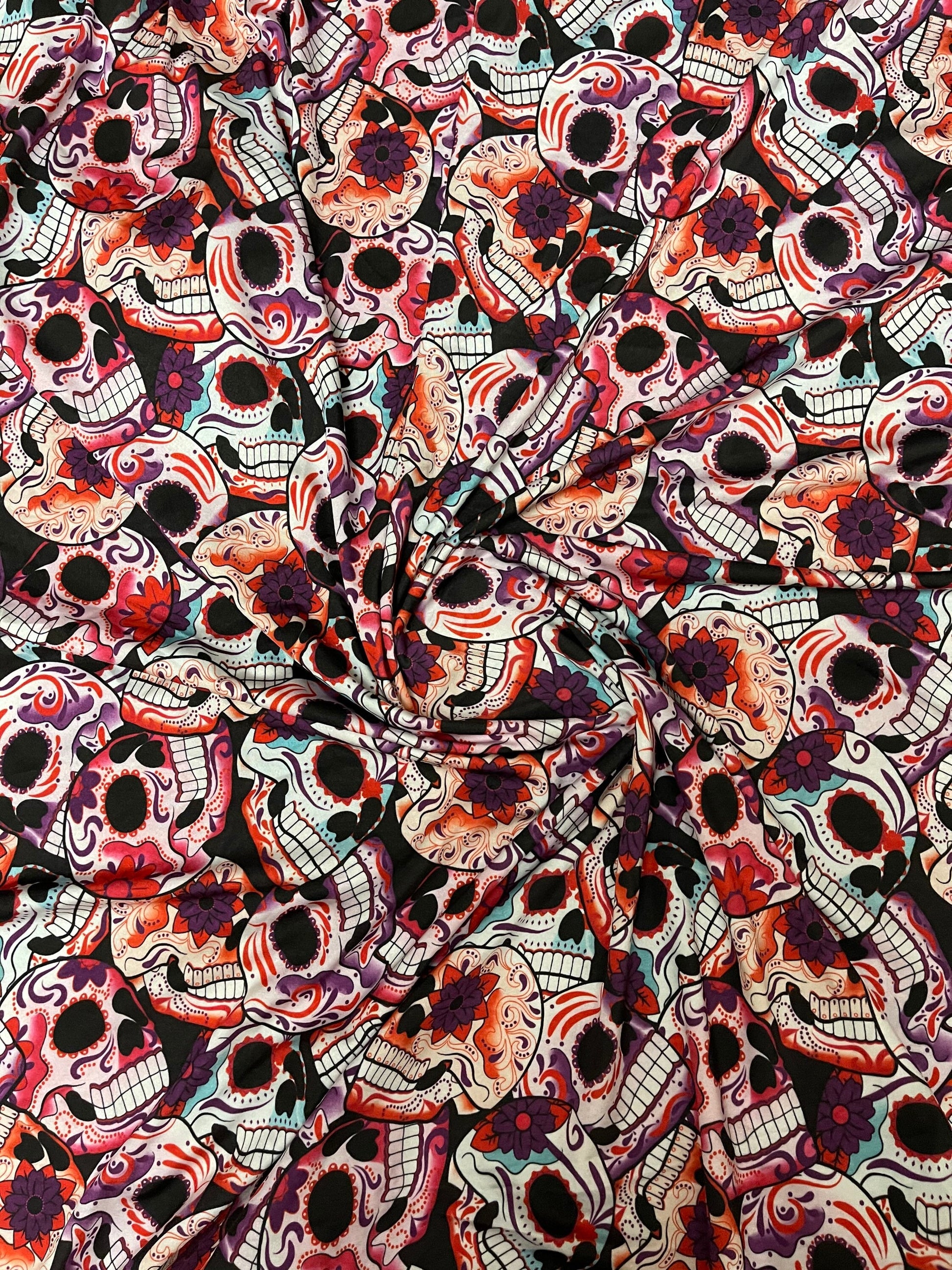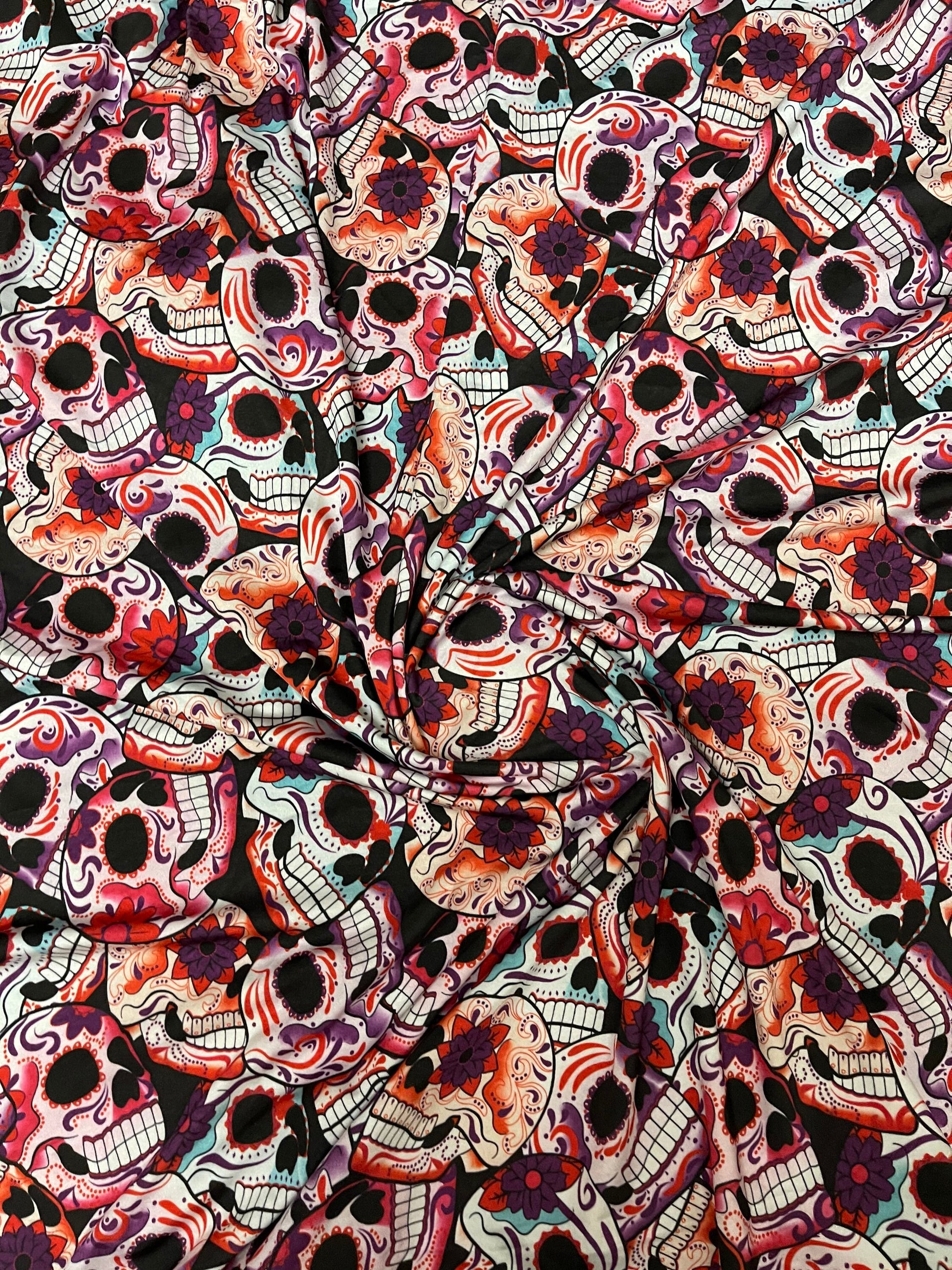 Skull design multicolor print on great quality of nylon spandex 4-way stretch 58/60” Sold by the YD. Ships Worldwide from Los Angeles cali