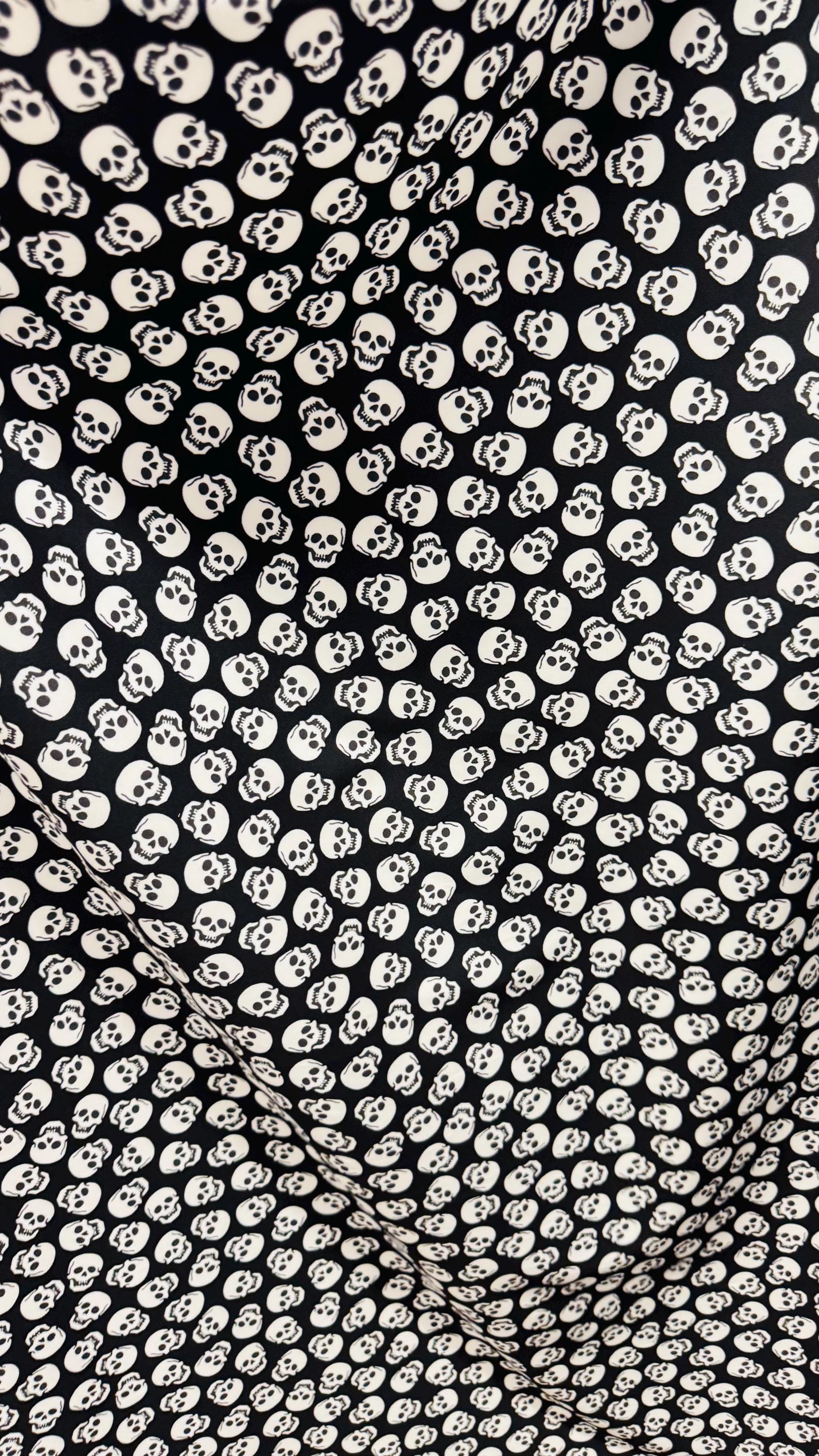 Skull Halloween design Black/White print on nylon spandex 4way stretch 58/60" sold by the yd. Ships worldwide from Los Angeles California