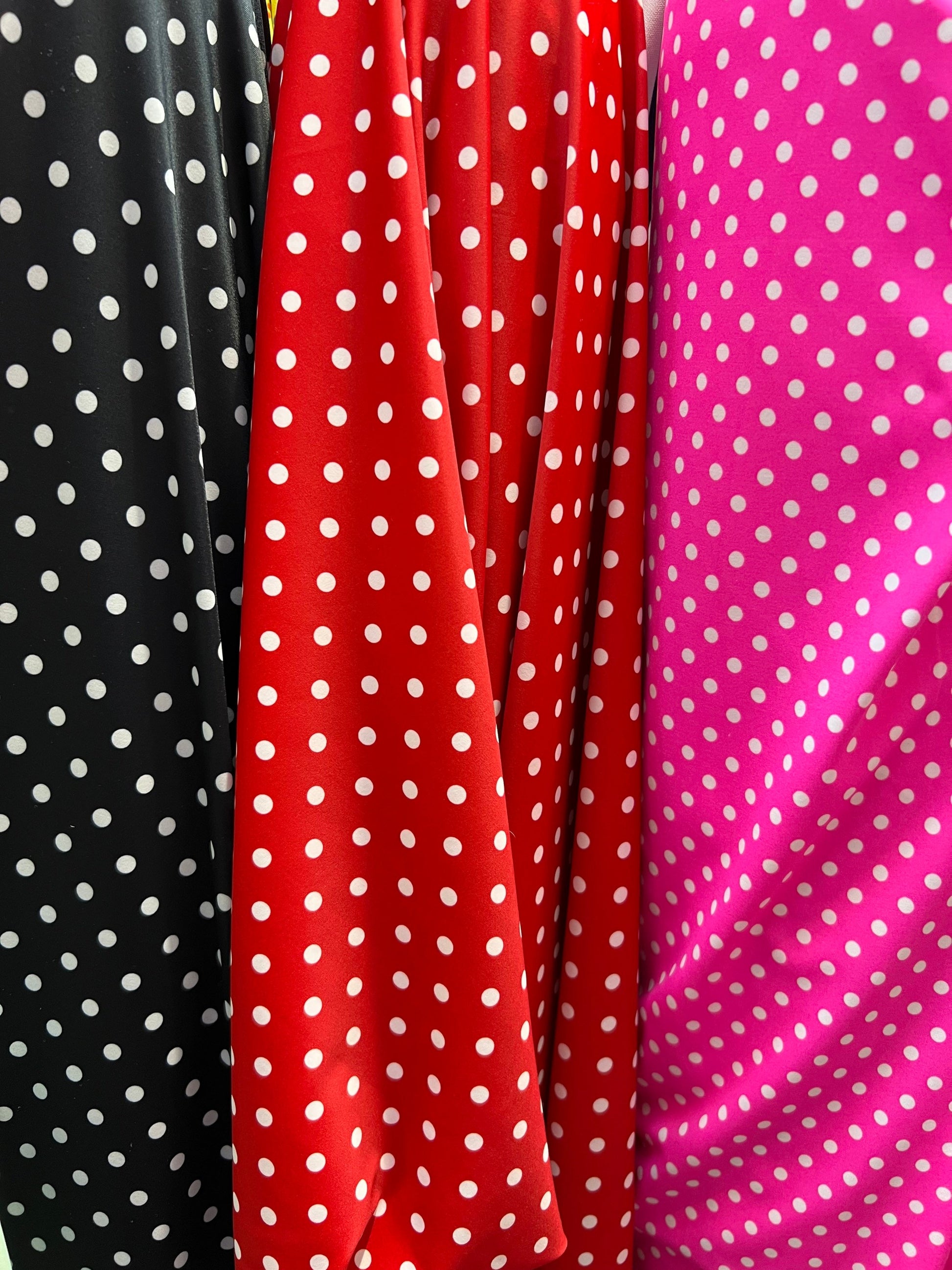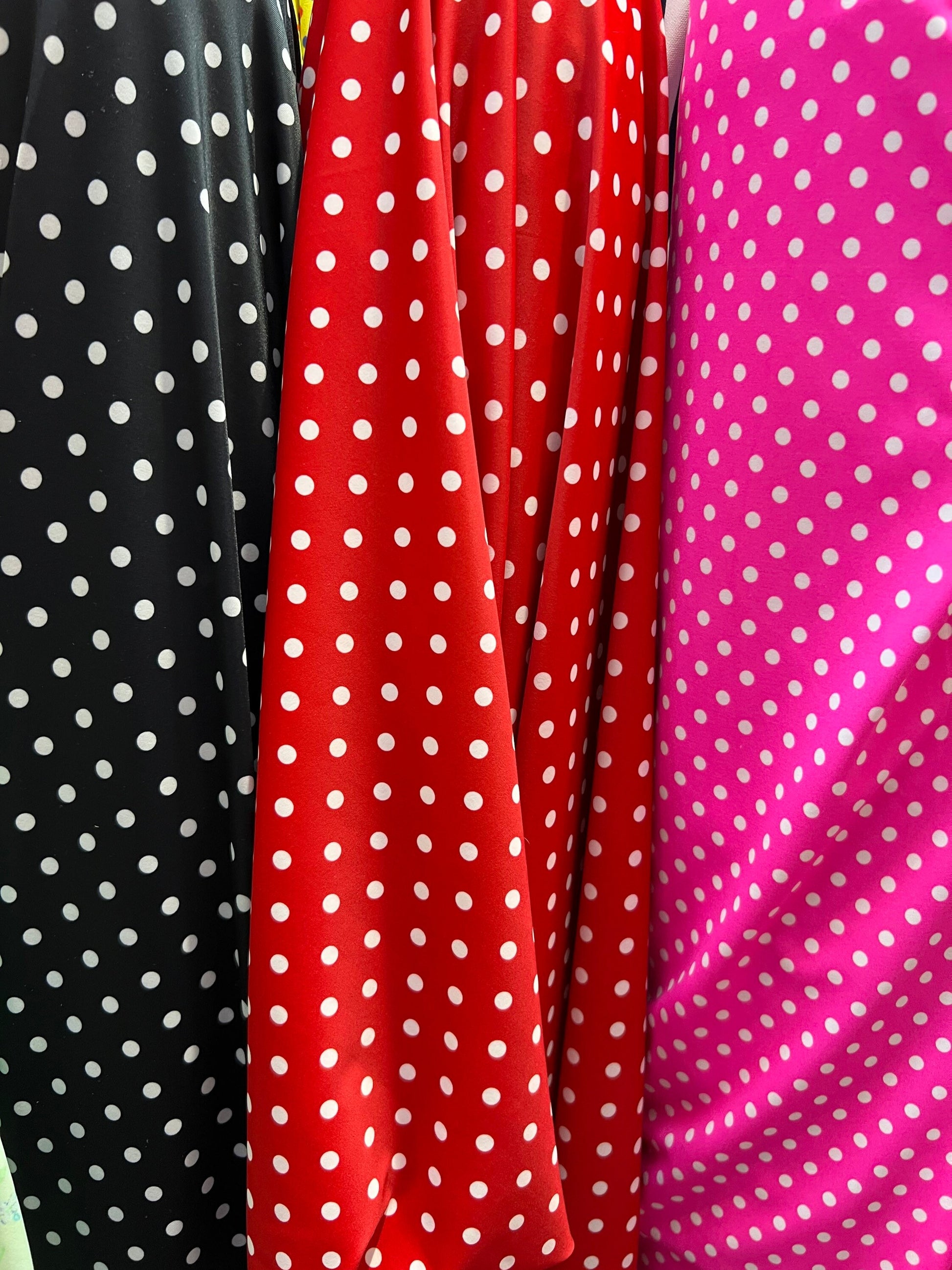 Small polka dots design print on best quality of nylon spandex 4-way stretch 58/60” Sold by the YD. Ships Worldwide from Los Ángeles California USA.