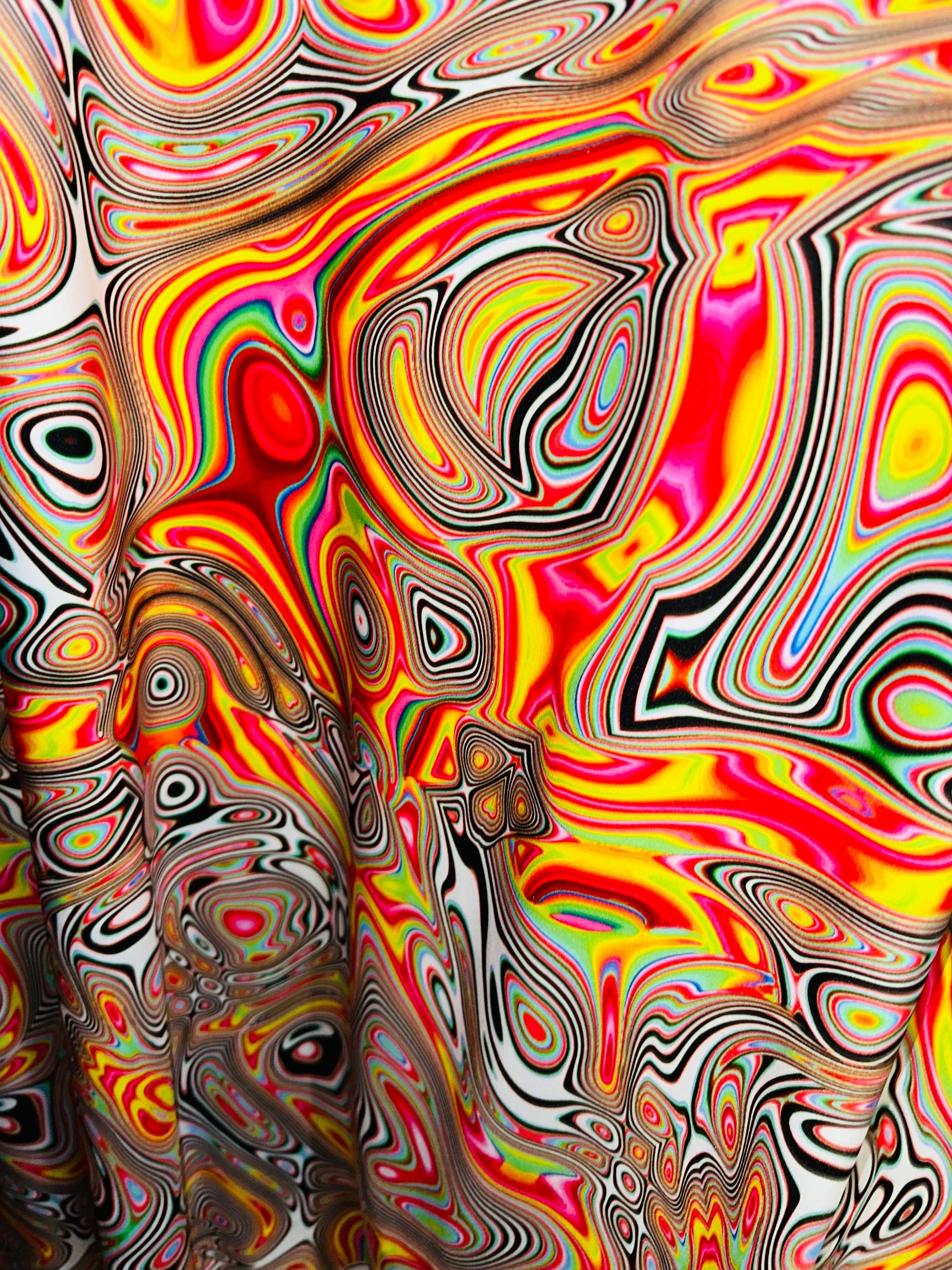 Spandex fabric Modern Lava design Fire multicolor print on great quality of nylon spandex 4-way stretch 58/60” Sold by the YD. Ships worldwide from Los Angeles California USA