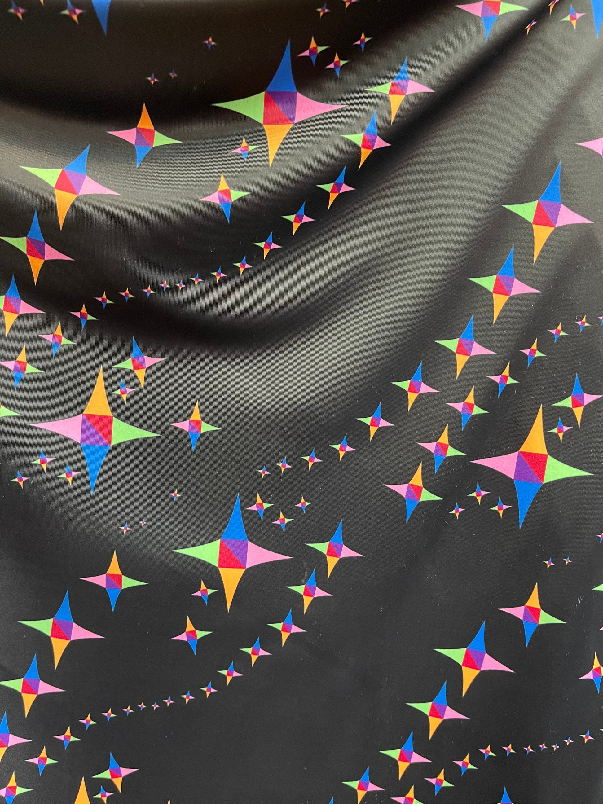 Stars design print on best quality of nylon spandex 4-way stretch 58/60” Sold by the YD. Ships Worldwide from Los Angeles California USA.