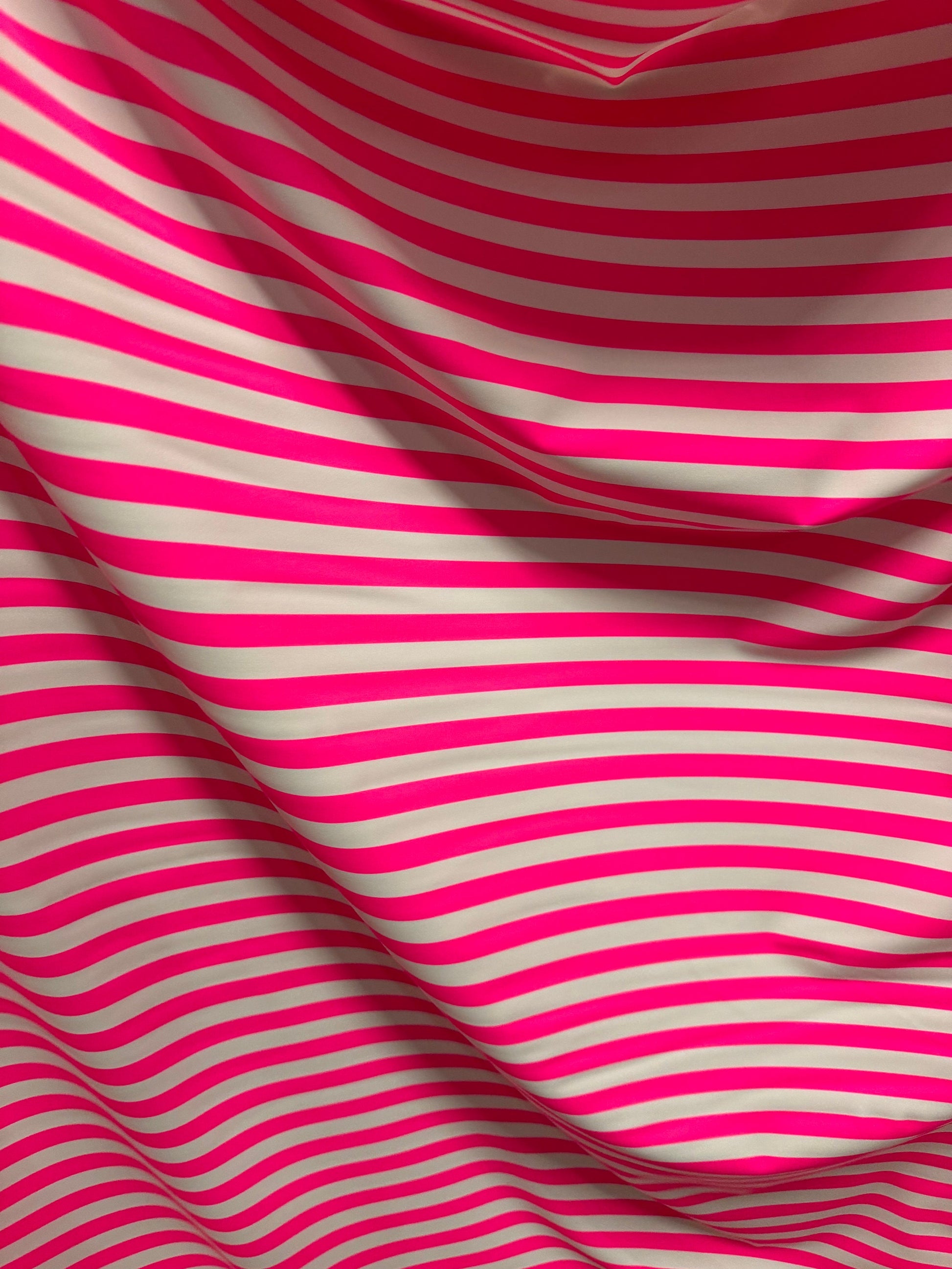 Stripe design 1/2” size neon pink/white print on best quality of nylon spandex 4-way stretch 58/60”