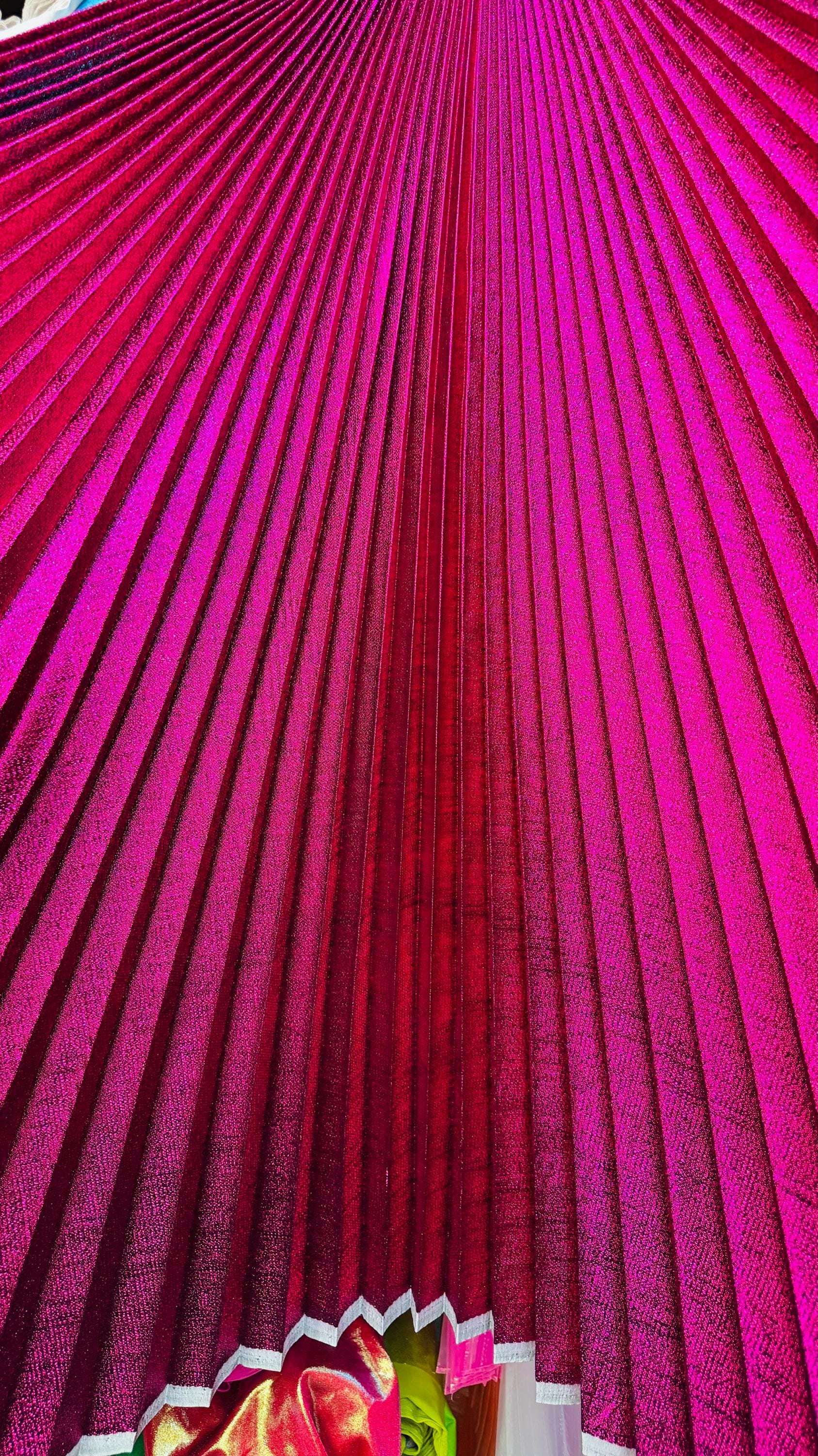 Sunburst pleated Luxury Fuchsia metallic lame non stretch 108” length by 45” width Sold by the PC. Ships worldwide from Los Angeles California USA. High quality fabrics by AlexLAFabrics