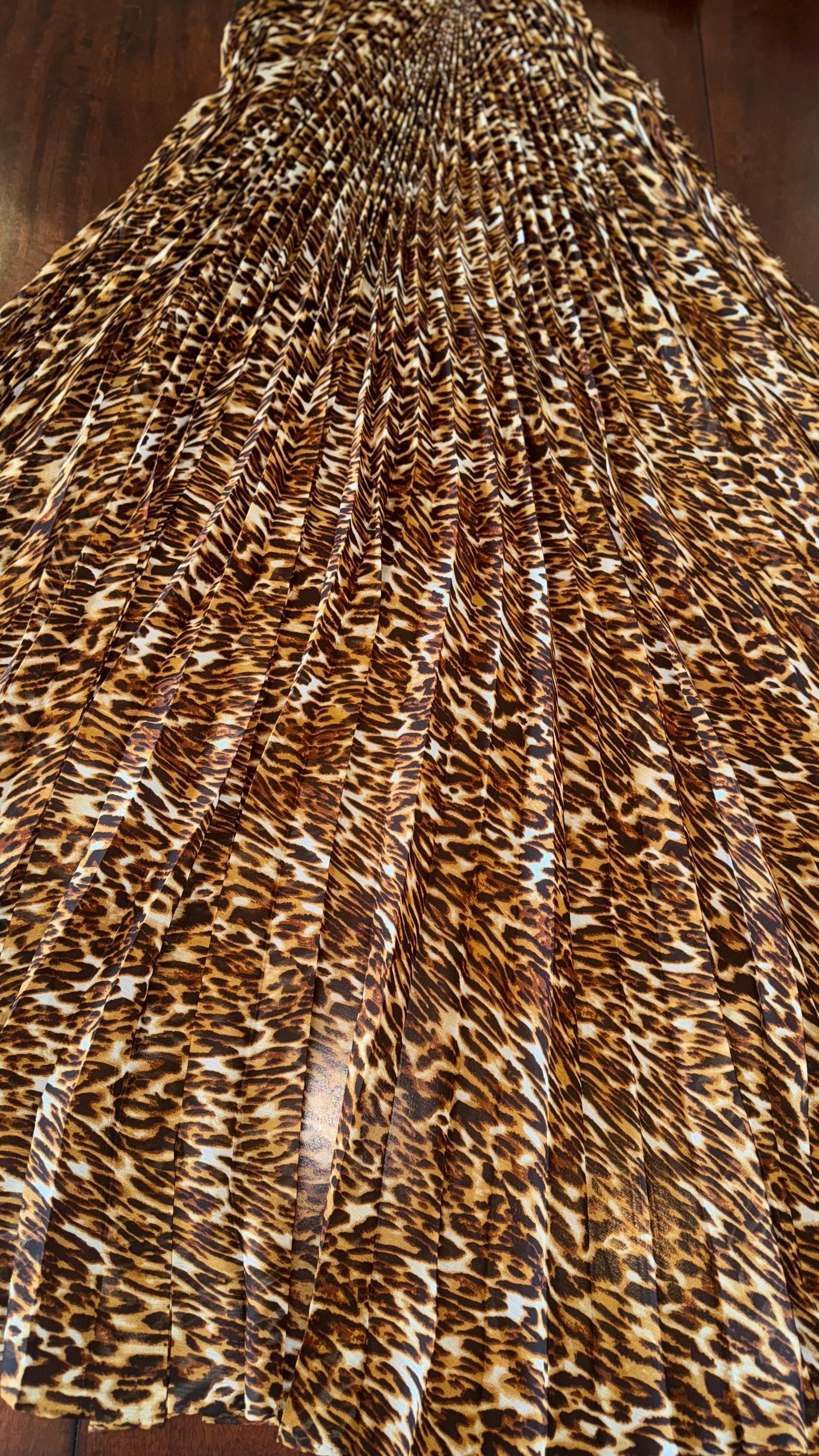 Sunburst pleated Silky Chiffon Leopard Design non stretch 190” length by 60” width Sold by the PC. Ships worldwide from Los Angeles California USA. High quality fabrics by AlexLAFabrics