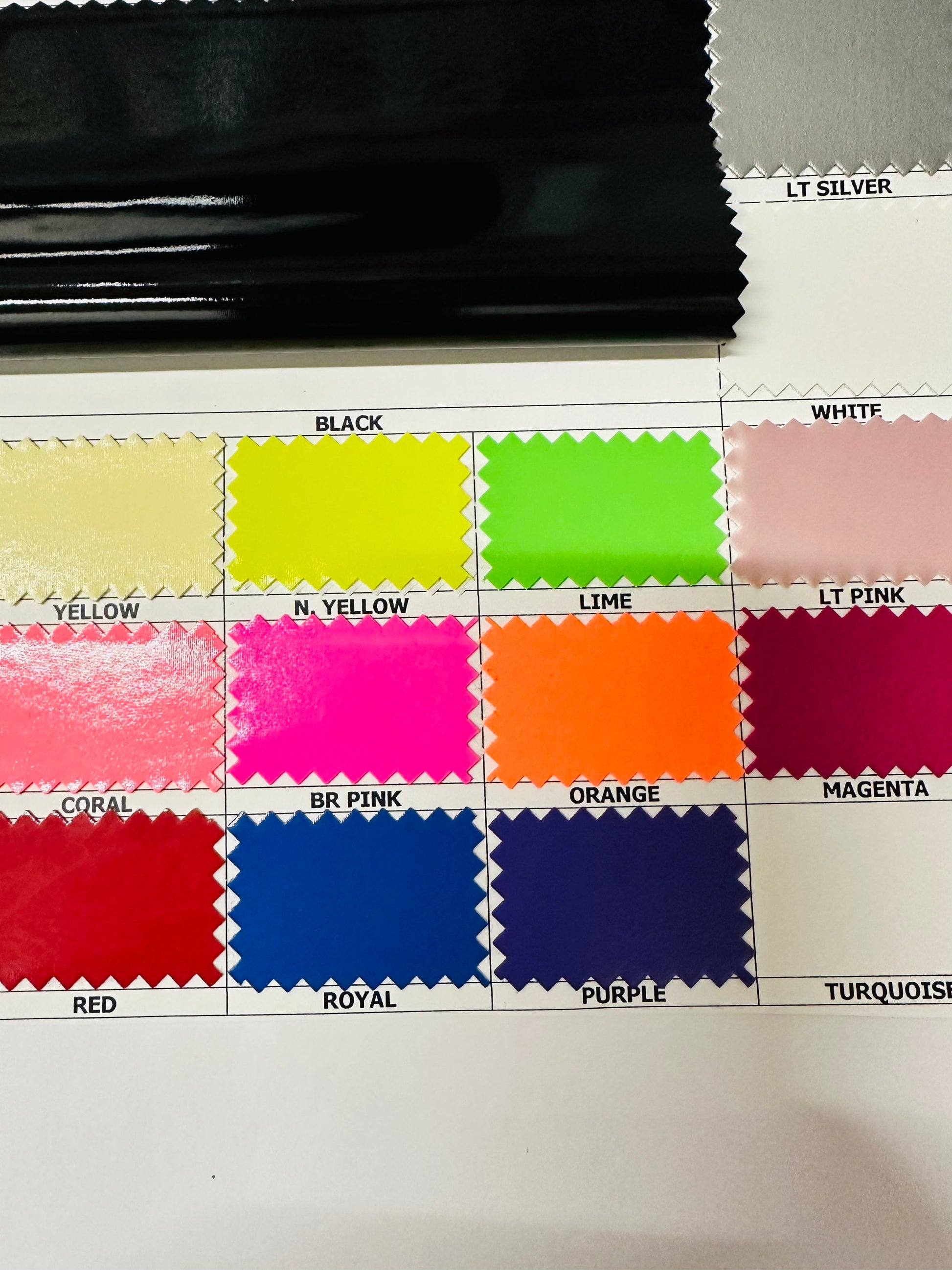 Super shiny stretch vinyl luxury quality nylon spandex 4-way stretch 58/60” Sold by the YD. Ships worldwide from Los Angeles California USA