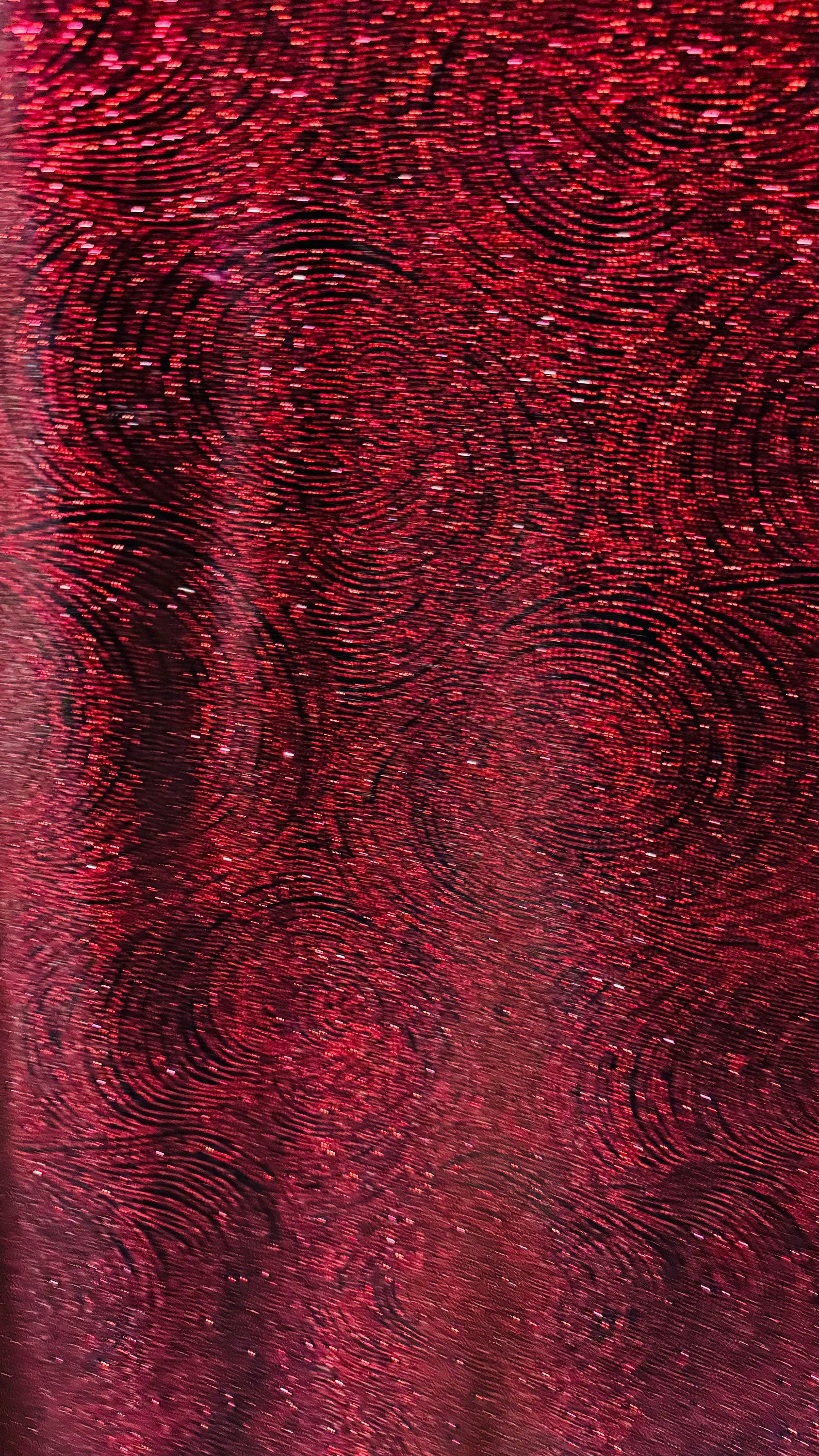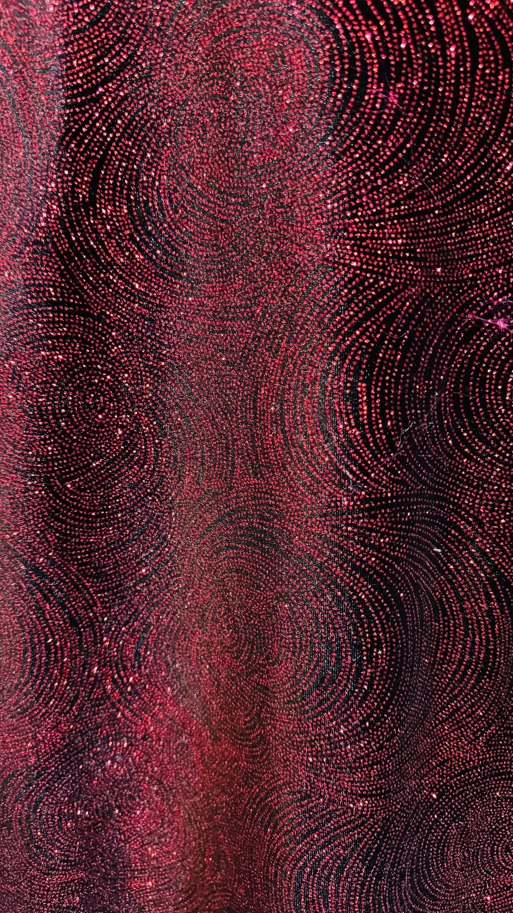 Swirl design on stretch velvet with glitter black/red 4-way stretch 58/60” Sold by the YD. Ships worldwide from Los Angeles California USA.