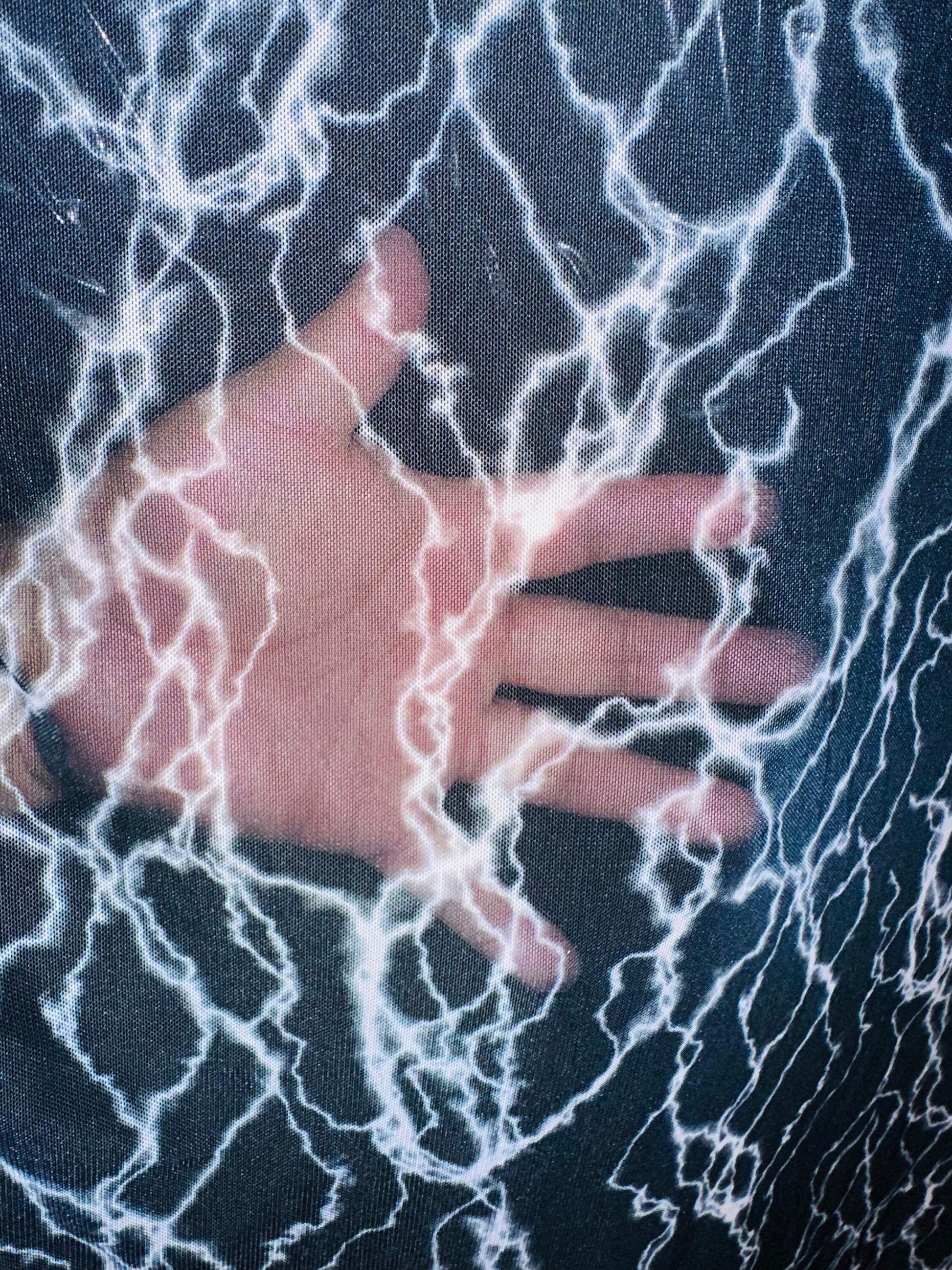 Thunderbolt design print on great quality of power mesh 4-way stretch 58/60”