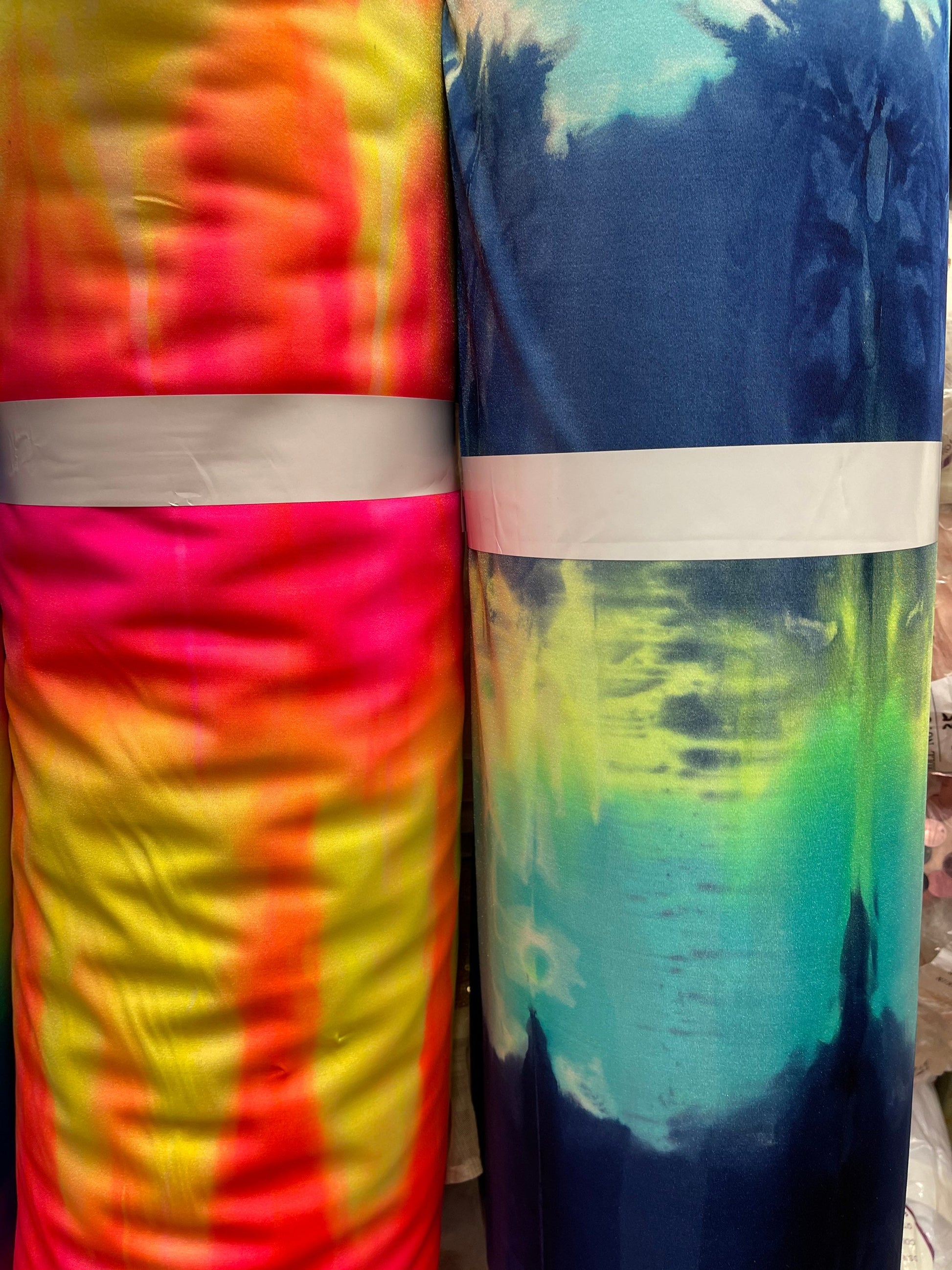 Tie dye design print on best quality of nylon spandex 4-way stretch 58/60” Sold by the YD. Ships Worldwide from Los Angeles California USA.