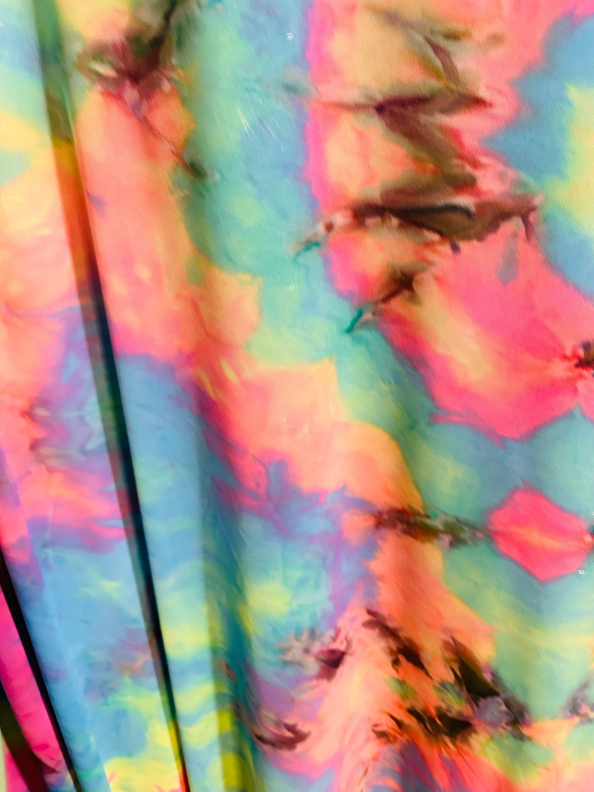 Tie dye multi pastel power mesh 4-way stretch 58/60” Sold by the YD.