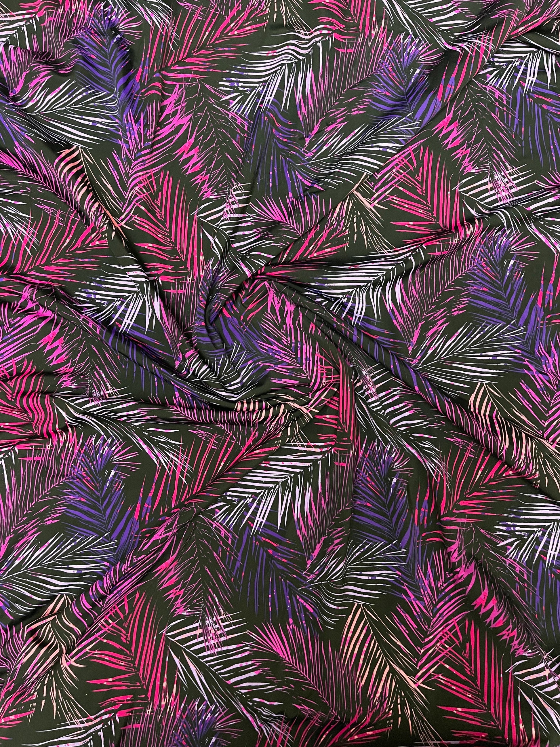 Tropical leaves design Black/Multicolor print on nylon spandex 4-way stretch 58/60” Sold by the YD. Ships Worldwide from Los Angeles CA