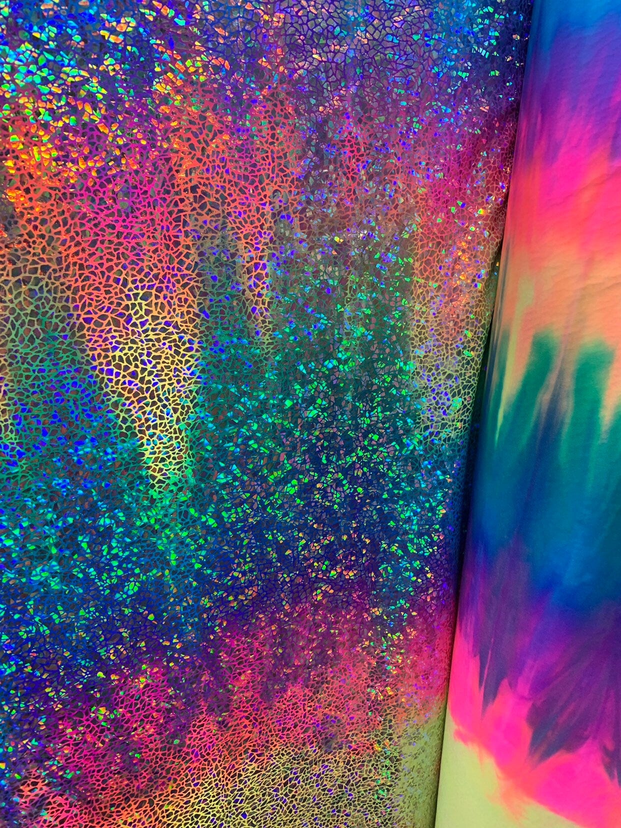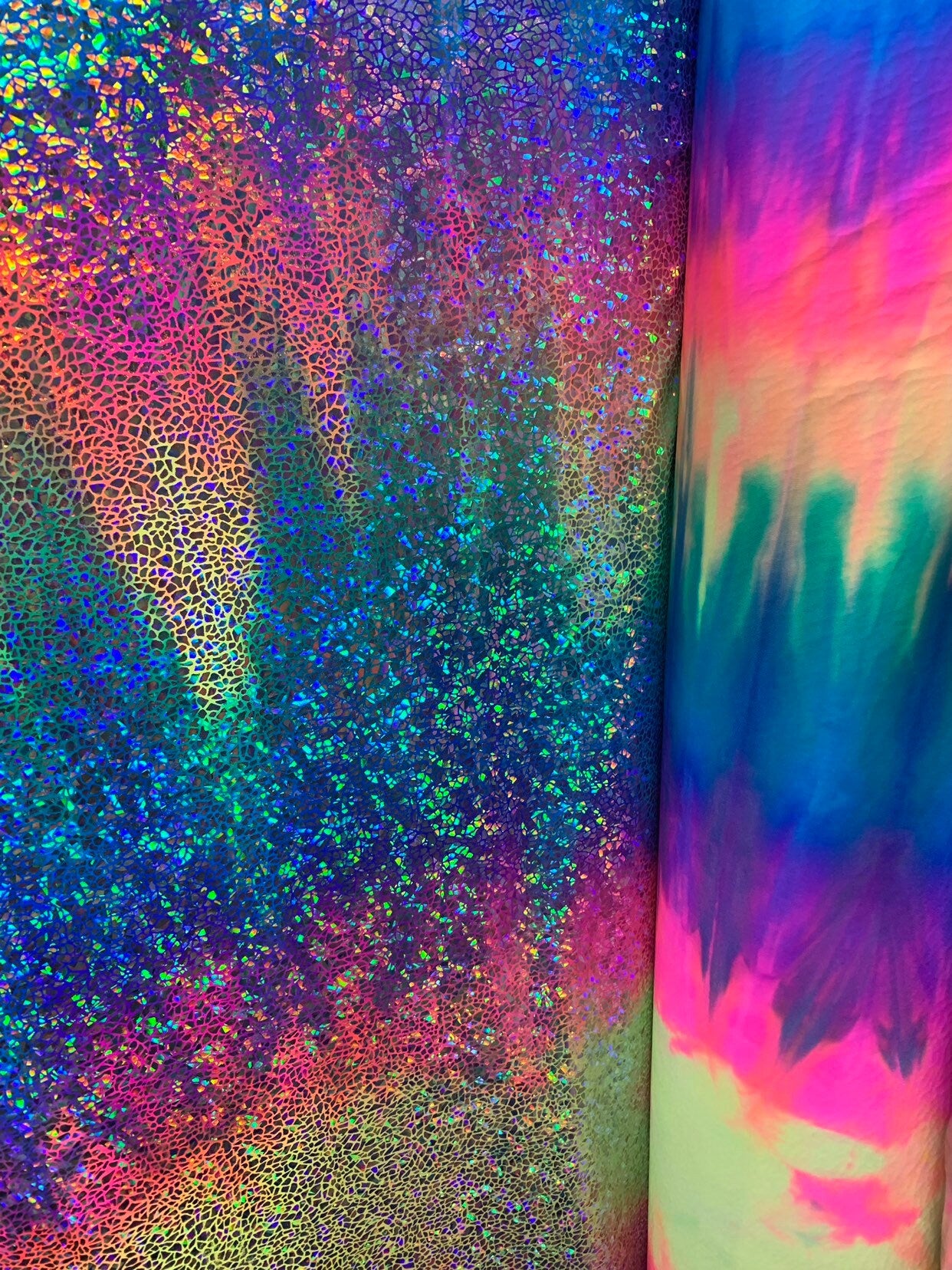 Unicorn reptile hologram metallic skin snake tie dye rainbow base 4way nylon spandex 58/60" Sold by the YD. Ships worldwide from Los Angeles