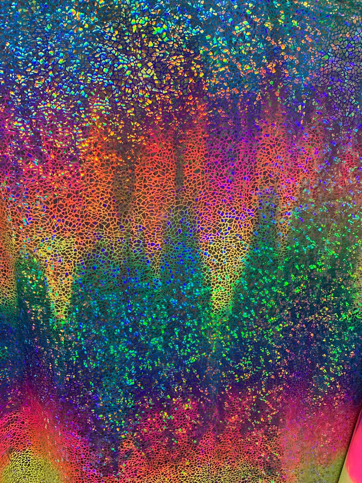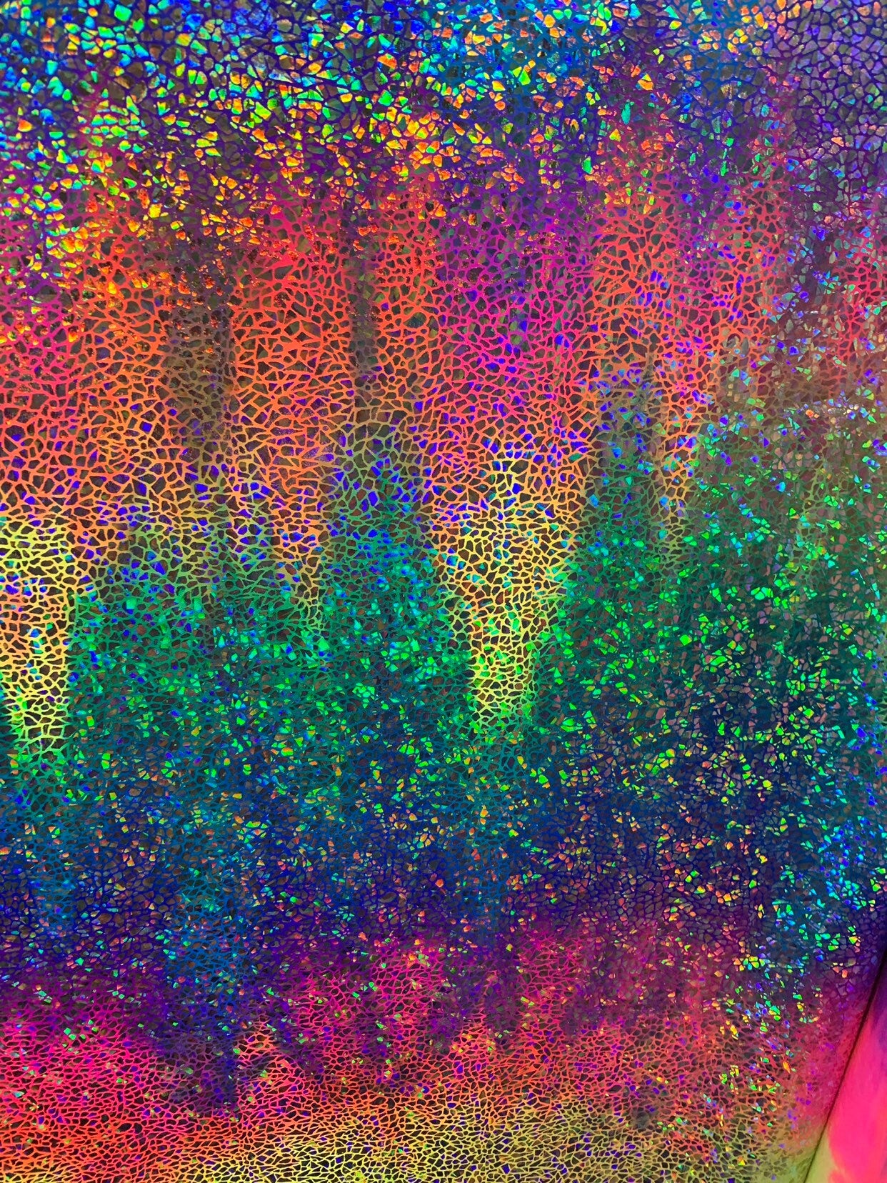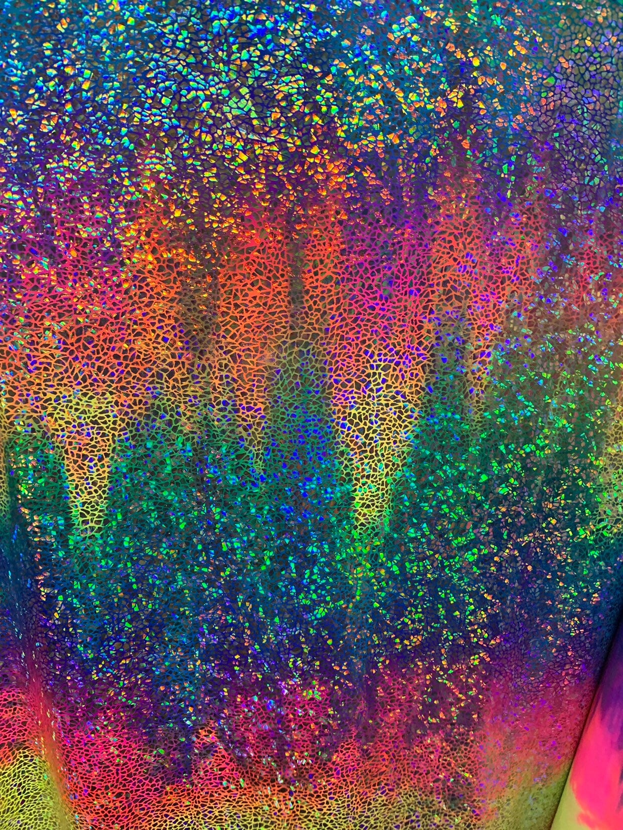 Unicorn reptile hologram metallic skin snake tie dye rainbow base 4way nylon spandex 58/60" Sold by the YD. Ships worldwide from Los Angeles California USA.