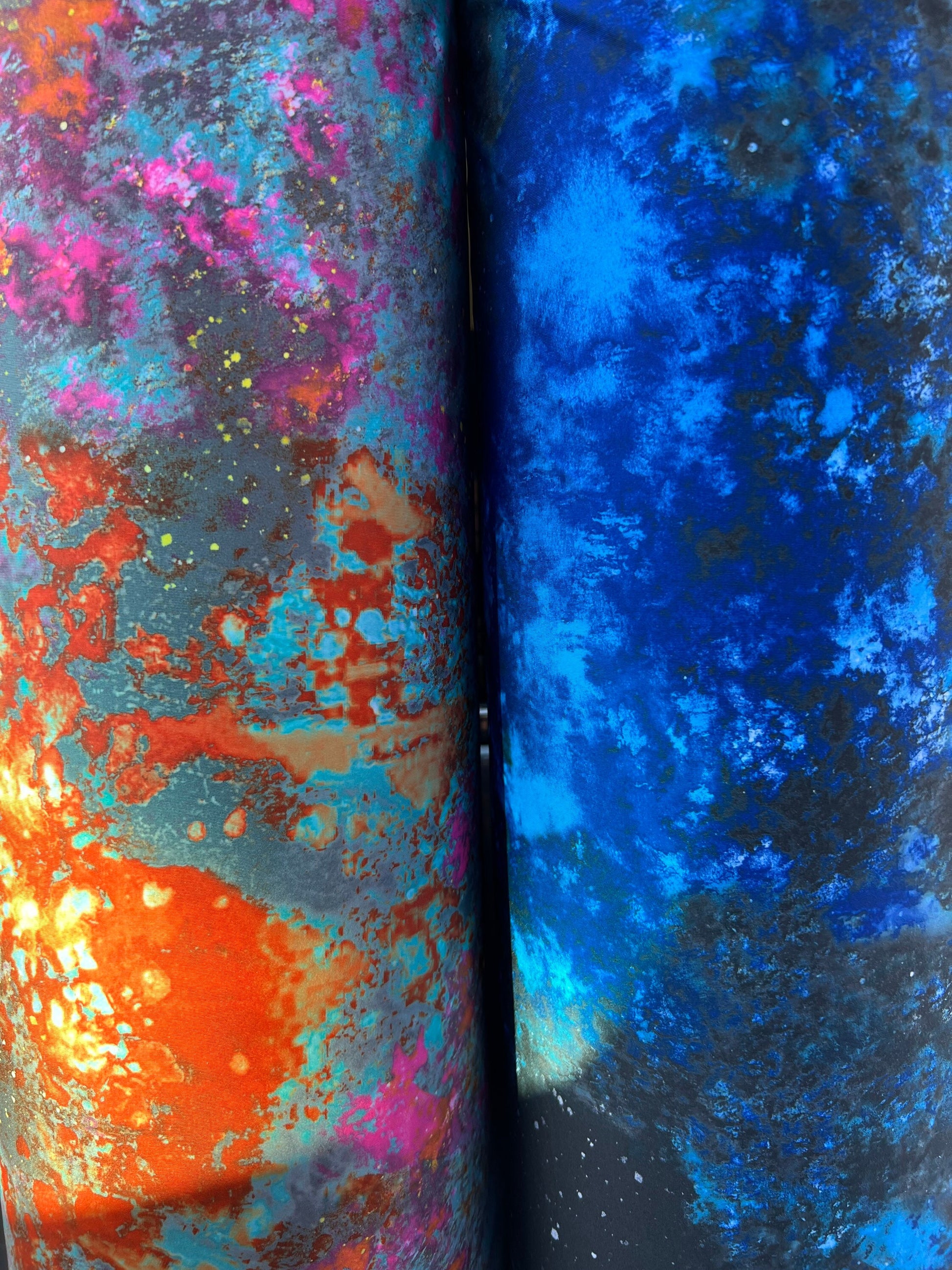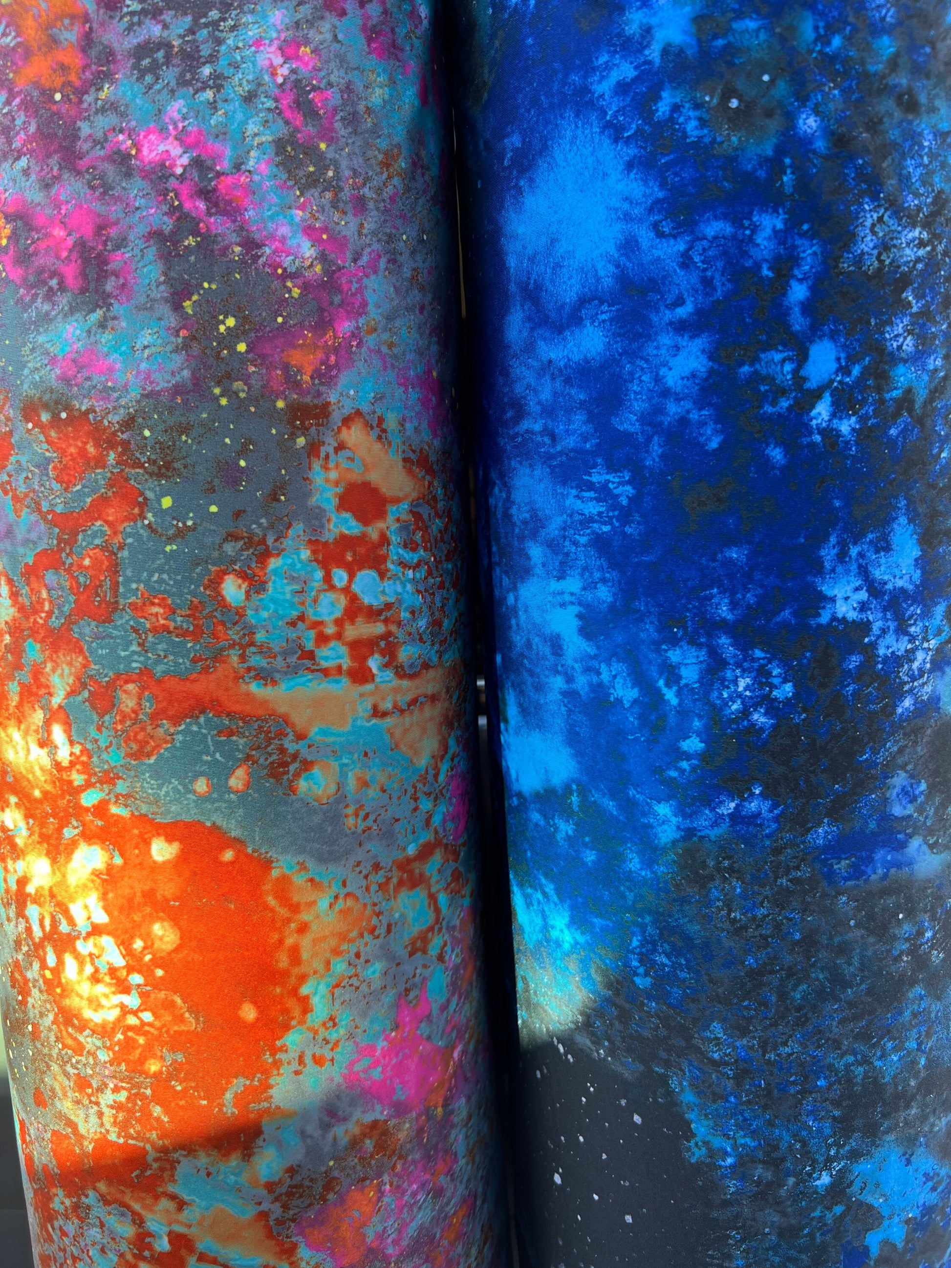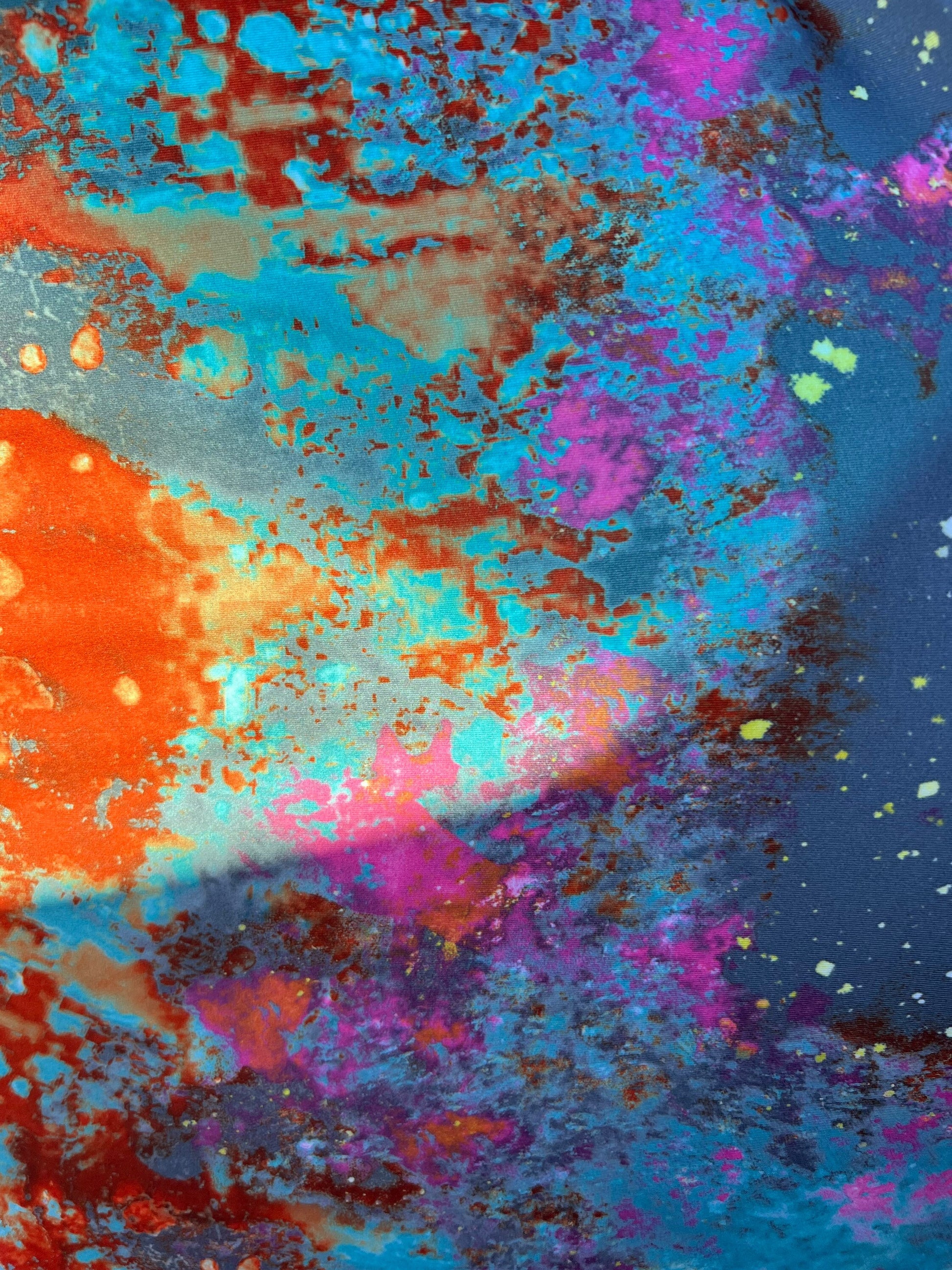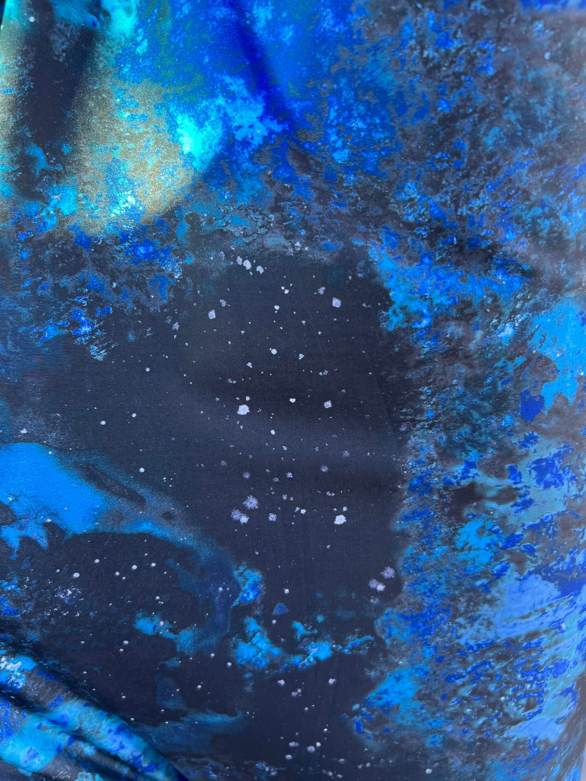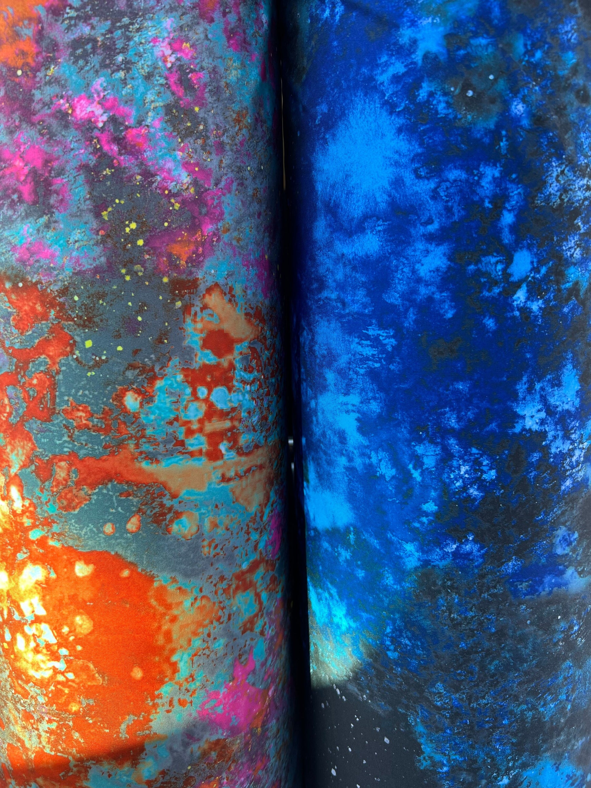 Universe design Multicolor print on great quality of nylon spandex 4-way stretch 58/60” Sold by the YD. Ships Worldwide from Los Angeles California USA.