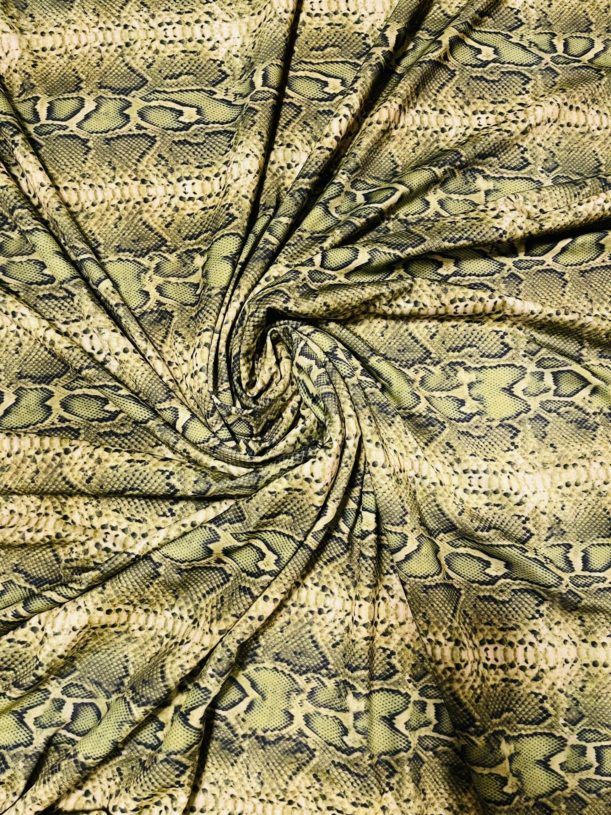 Viper green snake design print on great quality of nylon spandex 4-way stretch 58/60” Sold by the YD. Ships Worldwide from Los Angeles CA