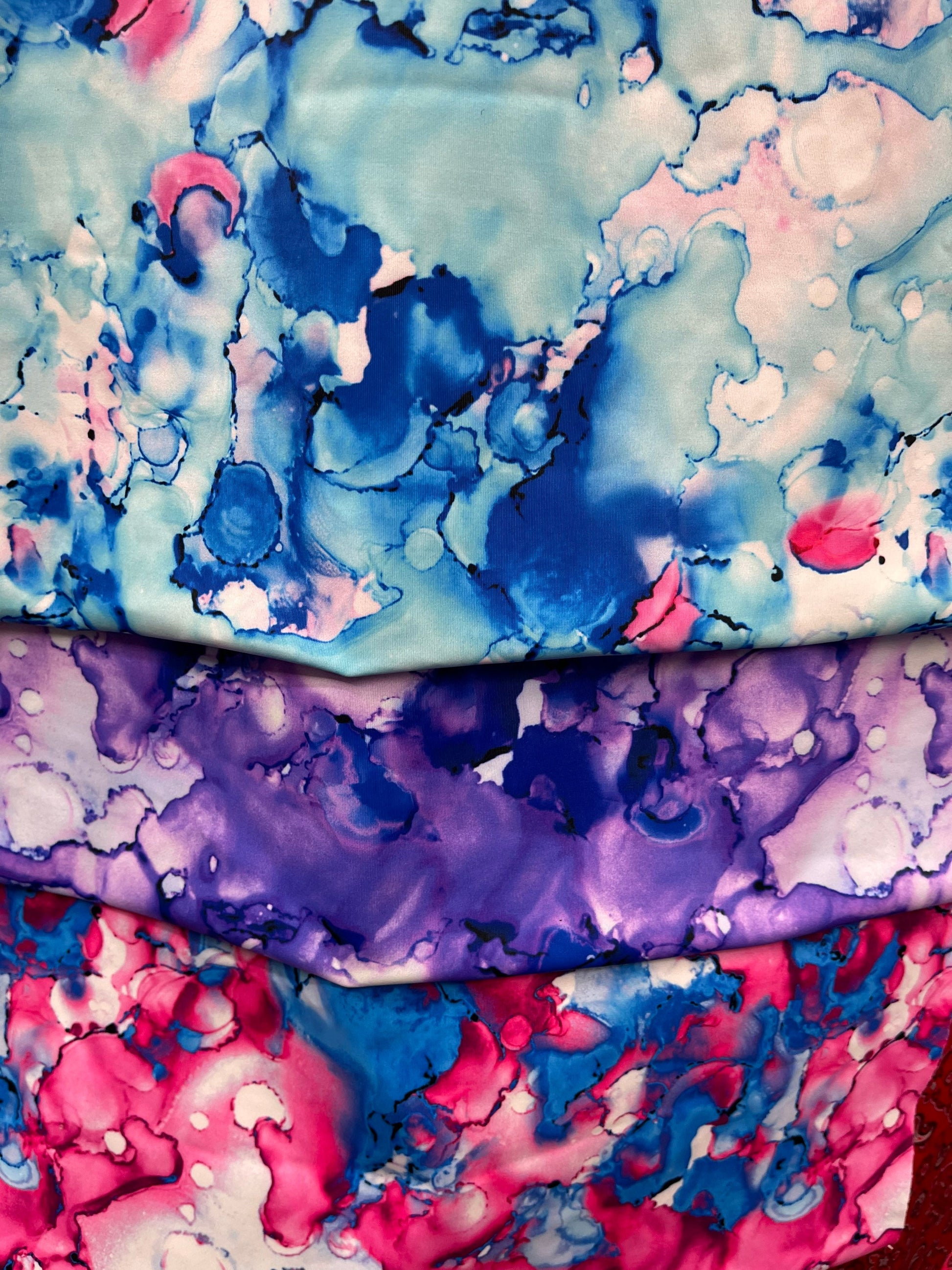 Water abstract design Multicolor print on best quality of nylon spandex 4-way stretch 58/60” Sold by the YD. Ships Worldwide from Los Angeles California USA