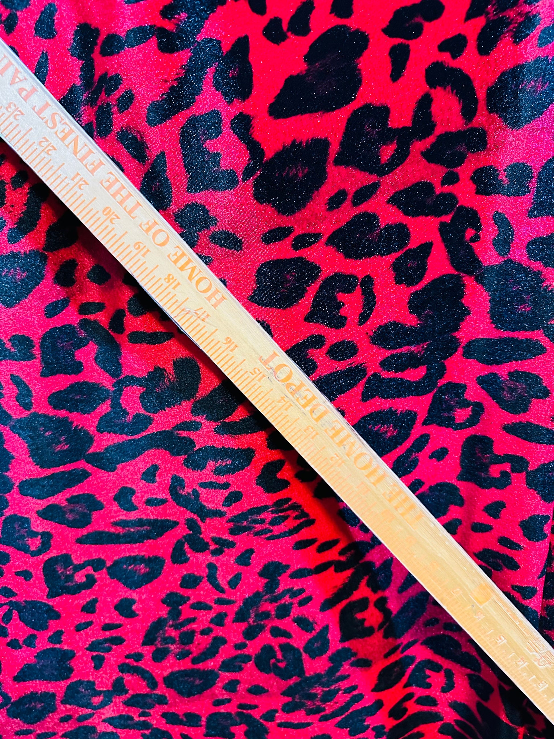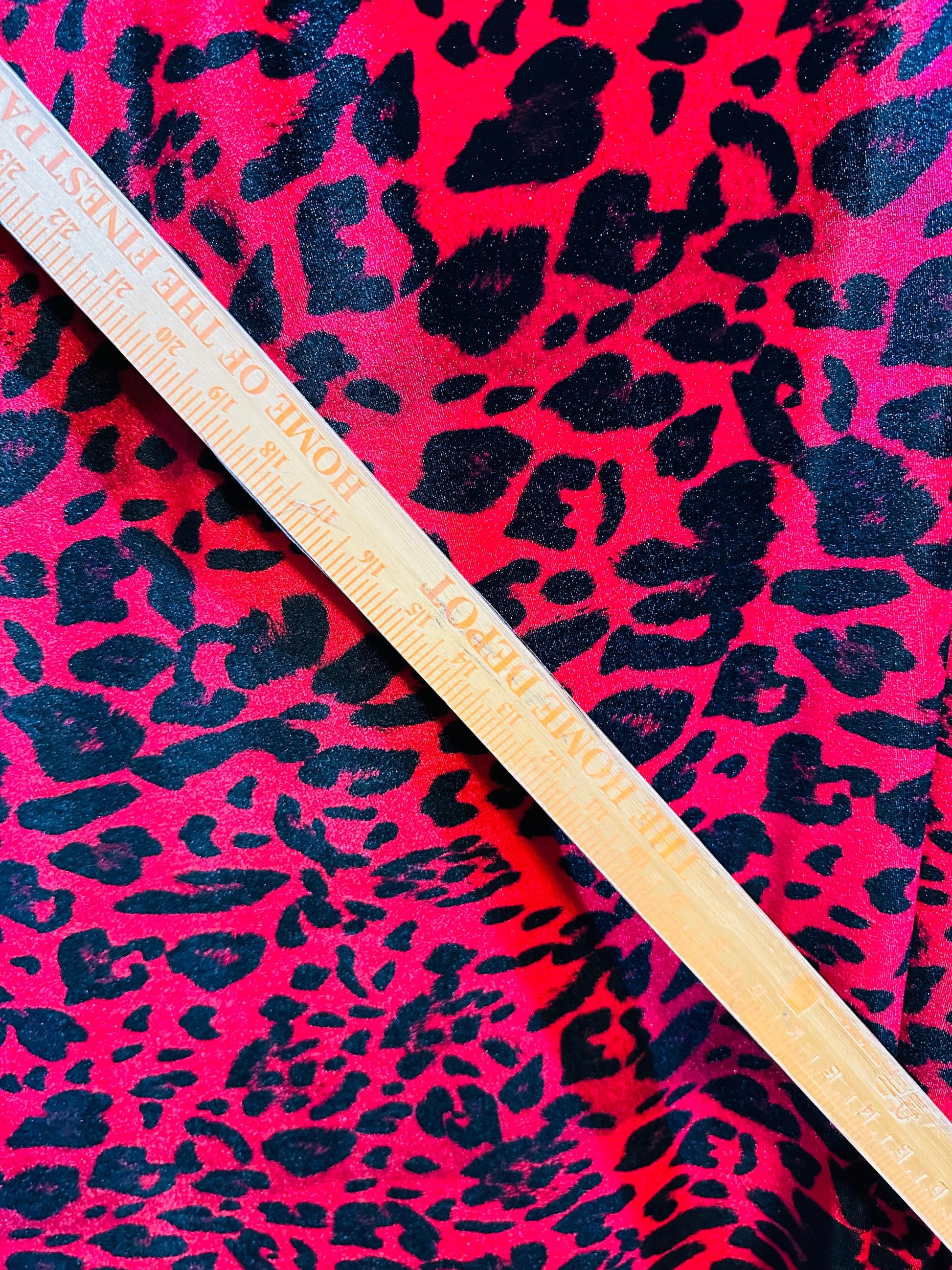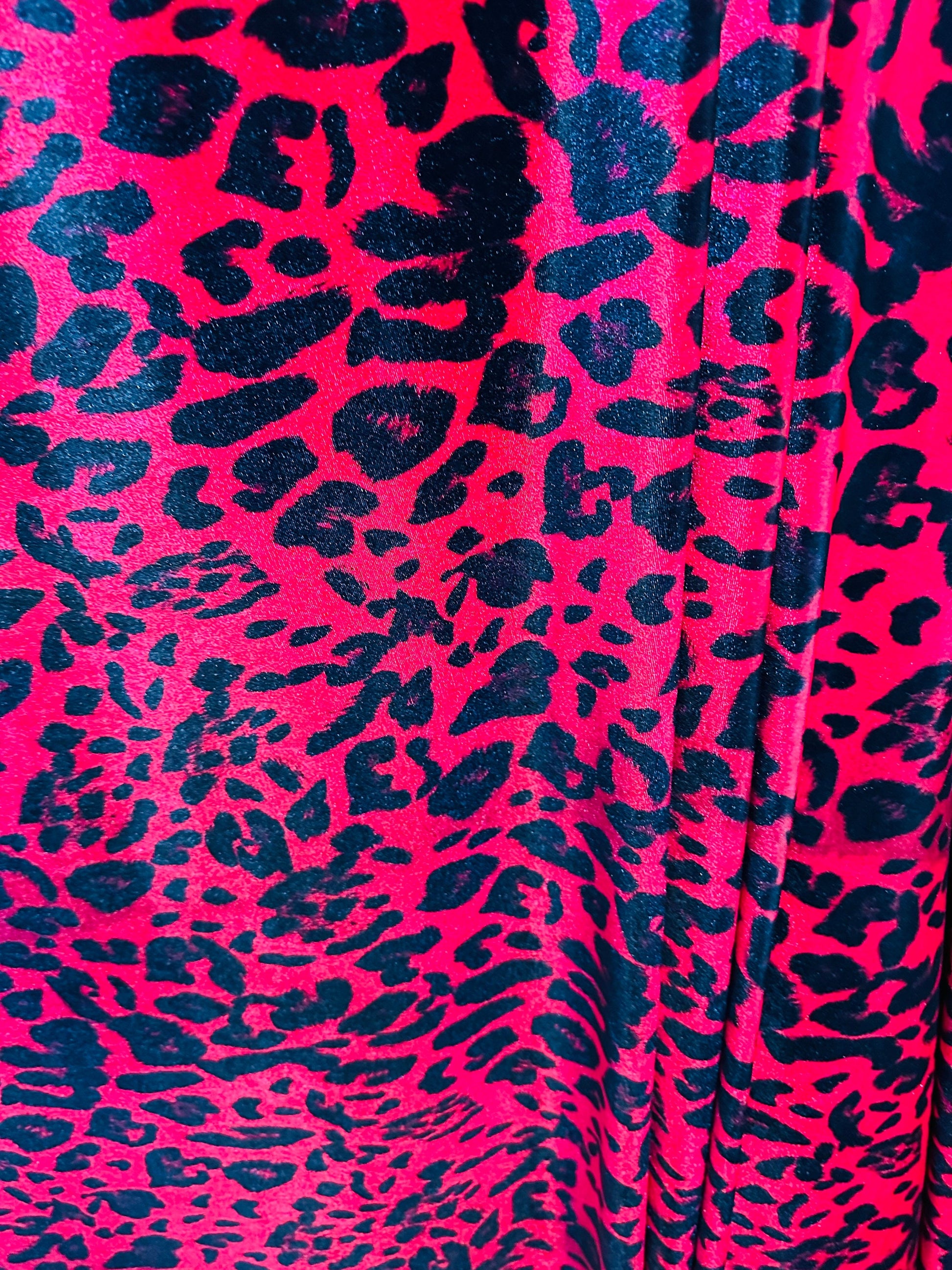 Wild leopard design red/black print on great quality of stretch velvet 4-way stretch 58/60”