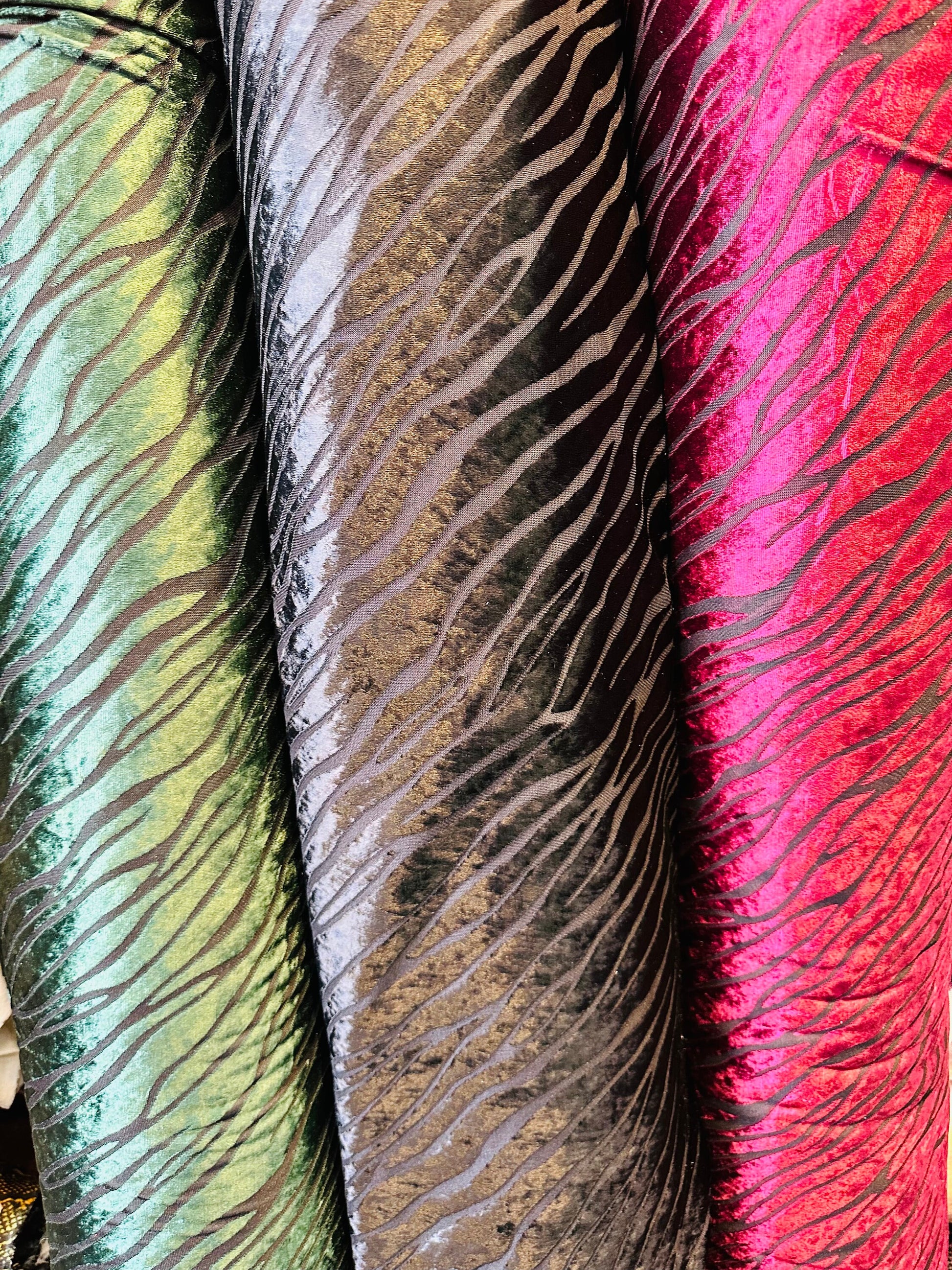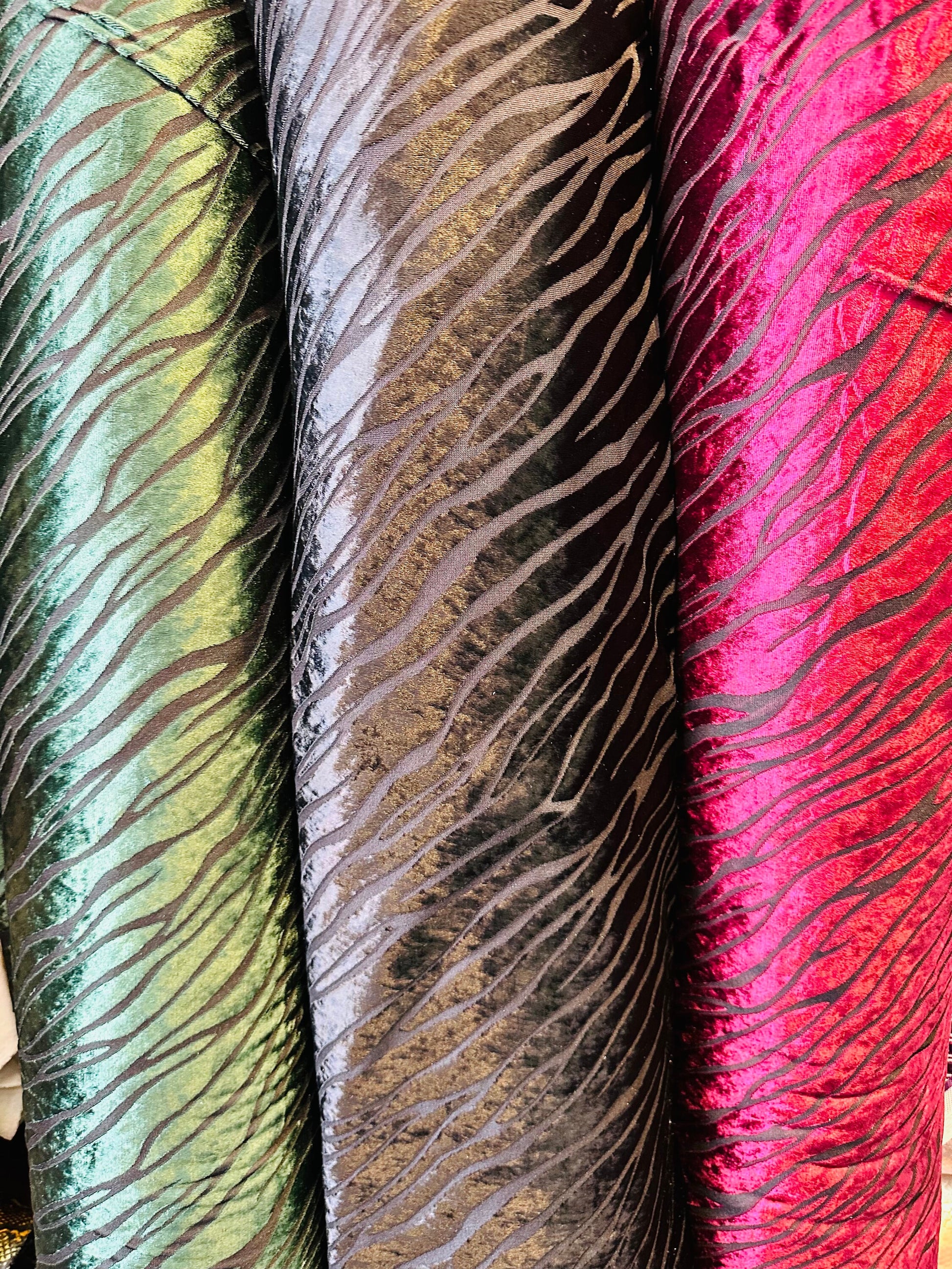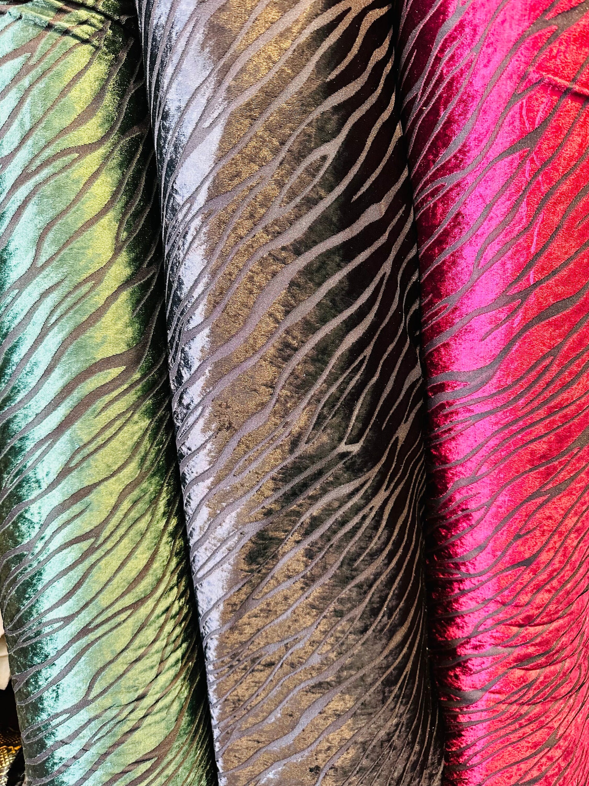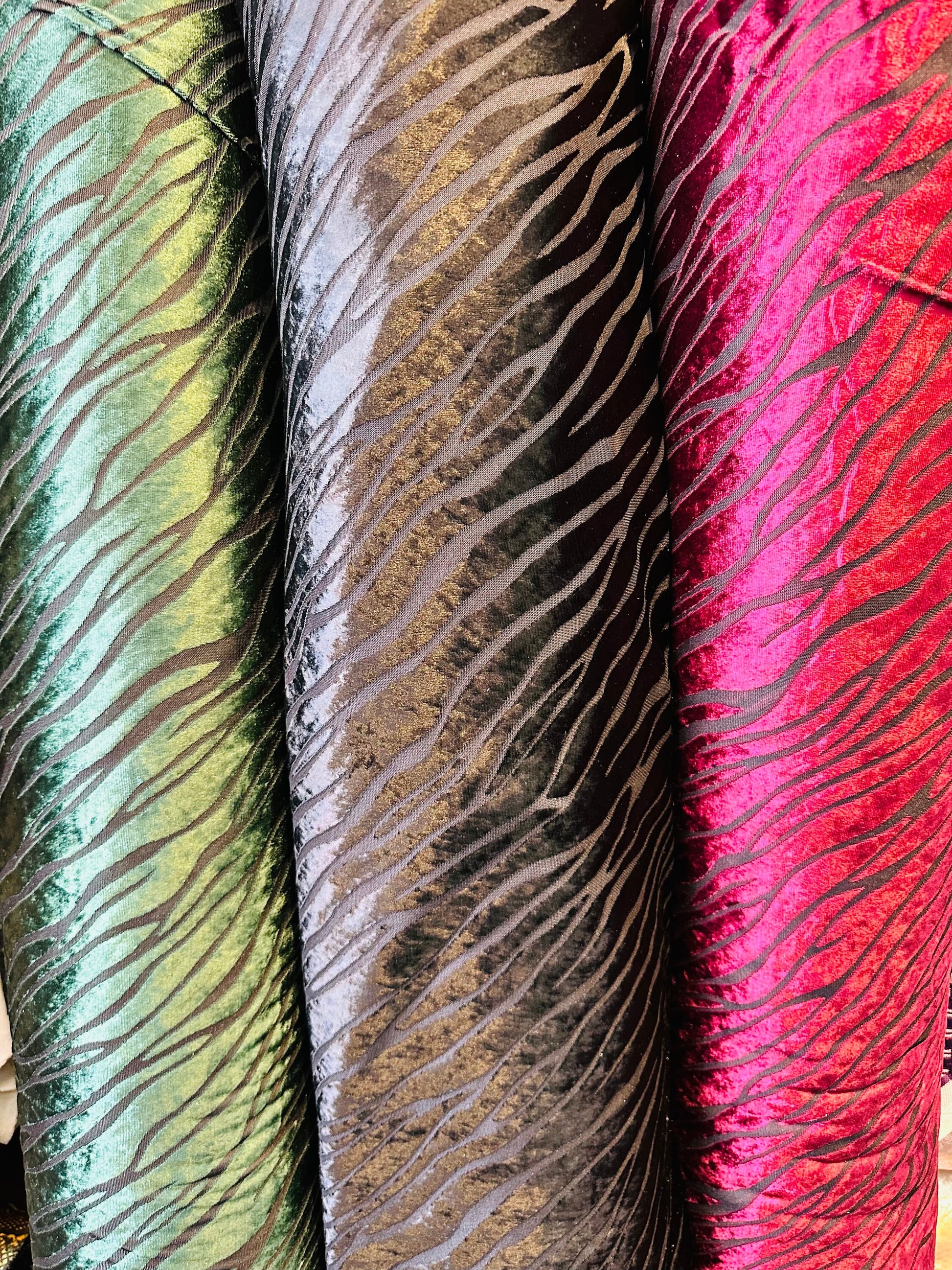 Zebra design burnout stretch velvet 2-way stretch 58/60” Sold by the YD. Ships worldwide from Los Angeles California USA